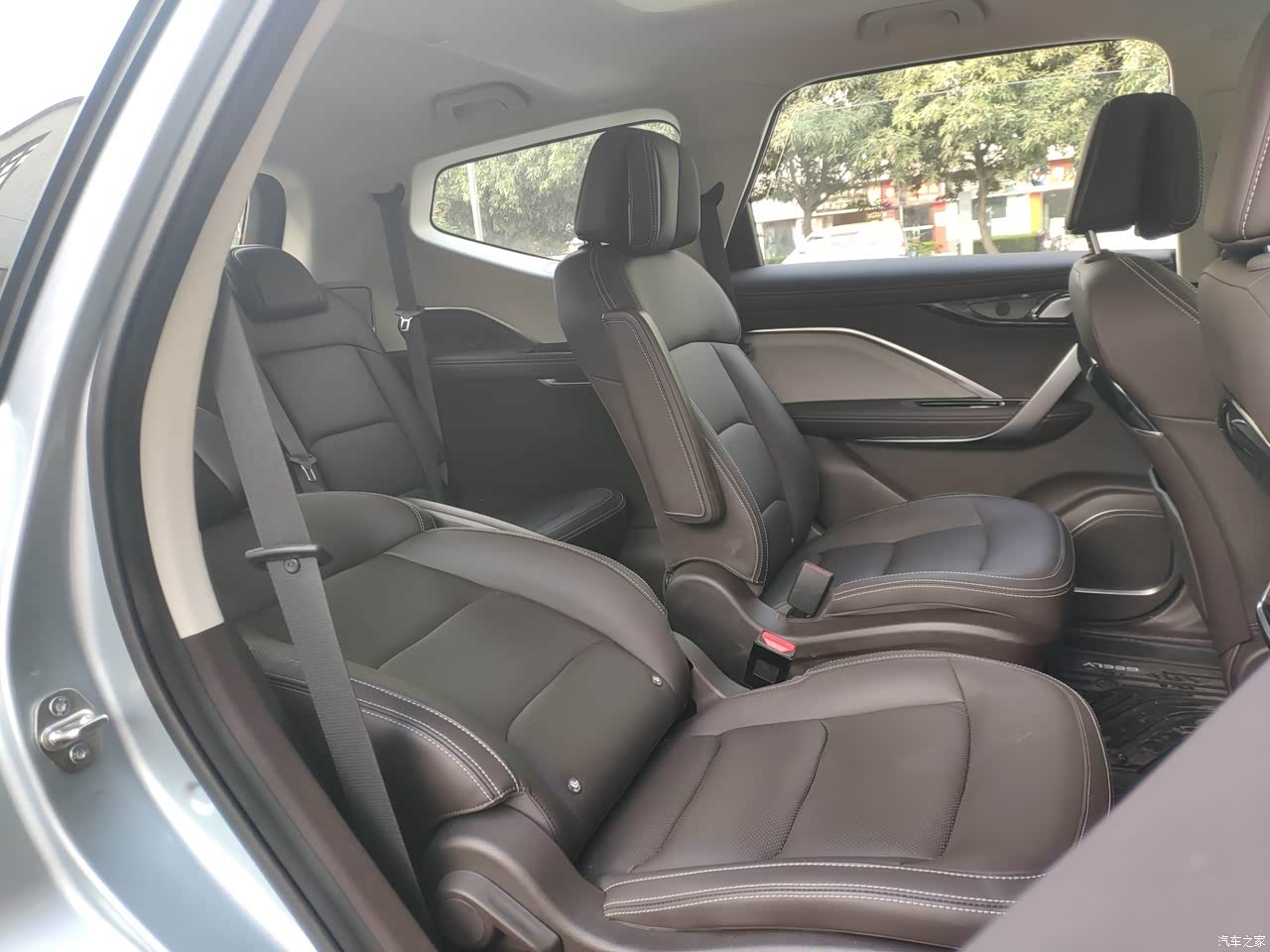 座椅坐着是非常舒服的,前排空间很宽大的,空间的舒适性没的说,第二排也可以前后移动,调到自己最舒服的位置,靠背也能往后倒,这个设计非常的人性化,怎么调都可以,不管想要什么样的坐姿怎么舒服怎么来都可以。第三排坐两个成人没问题,不过我拿来拉货居多。不过美中不足就是悬架有点硬,过颠簸路段可能就有些难受。