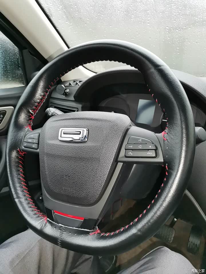 原车方向盘偏硬偏细,自己动手缝了个真皮套,手感好很多,又多了份驾驭它的欲望! 底盘工整,马路掉头及路边停车均无压力。 低速路遇不平时方向盘下有异响!尤其是胎压2.5时异响明显。正好以此为契机,检验宝能的售后时刻到了…(待续)