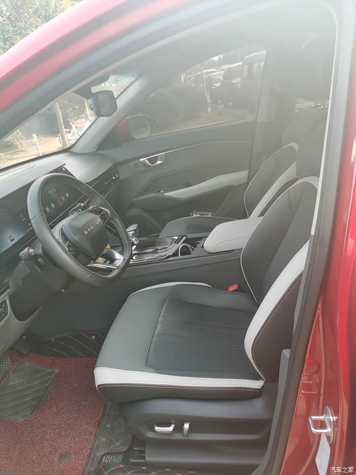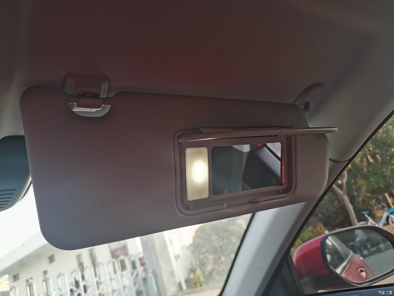 座椅是真皮座椅包裹性好,车子带有车机能语音操控,无钥匙进入,远程启动等功能都有,设计都很贴心,连化妆镜都带了灯。