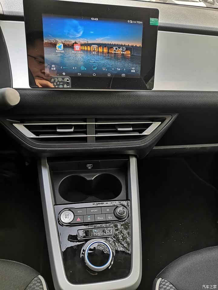 这车的内饰一般,中控屏幕没有什么实用功能,不过可以看一个倒车影像,其它的就没有可以实用的,里面的塑胶太多中控台上的也是塑胶的,其次就是中控很简单,这个放水杯的地方很小,我的水杯比较大,也就只能放到驾驶门。