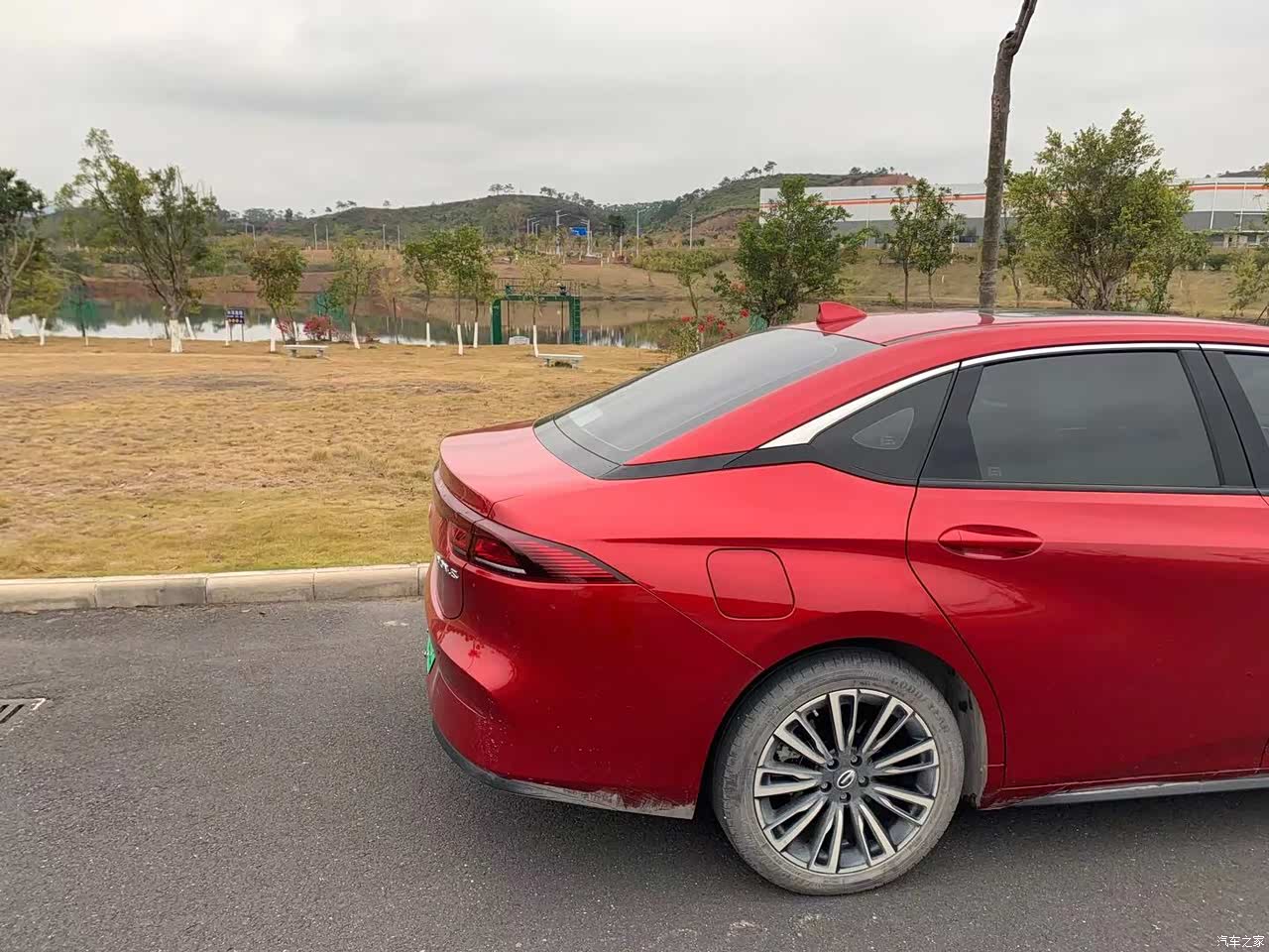 买这车就是冲着这个轿跑式外观买的,不管是整体的流线还是头灯尾灯的材质和设计都比较有未来感。算是白天车子自身颜值能支撑,到了晚上车灯也能有一战之力吧。虽然车头较短,但上翘的车尾很好的弥补了形态上的不足,同价位同级别外观设计还是很有优势的。