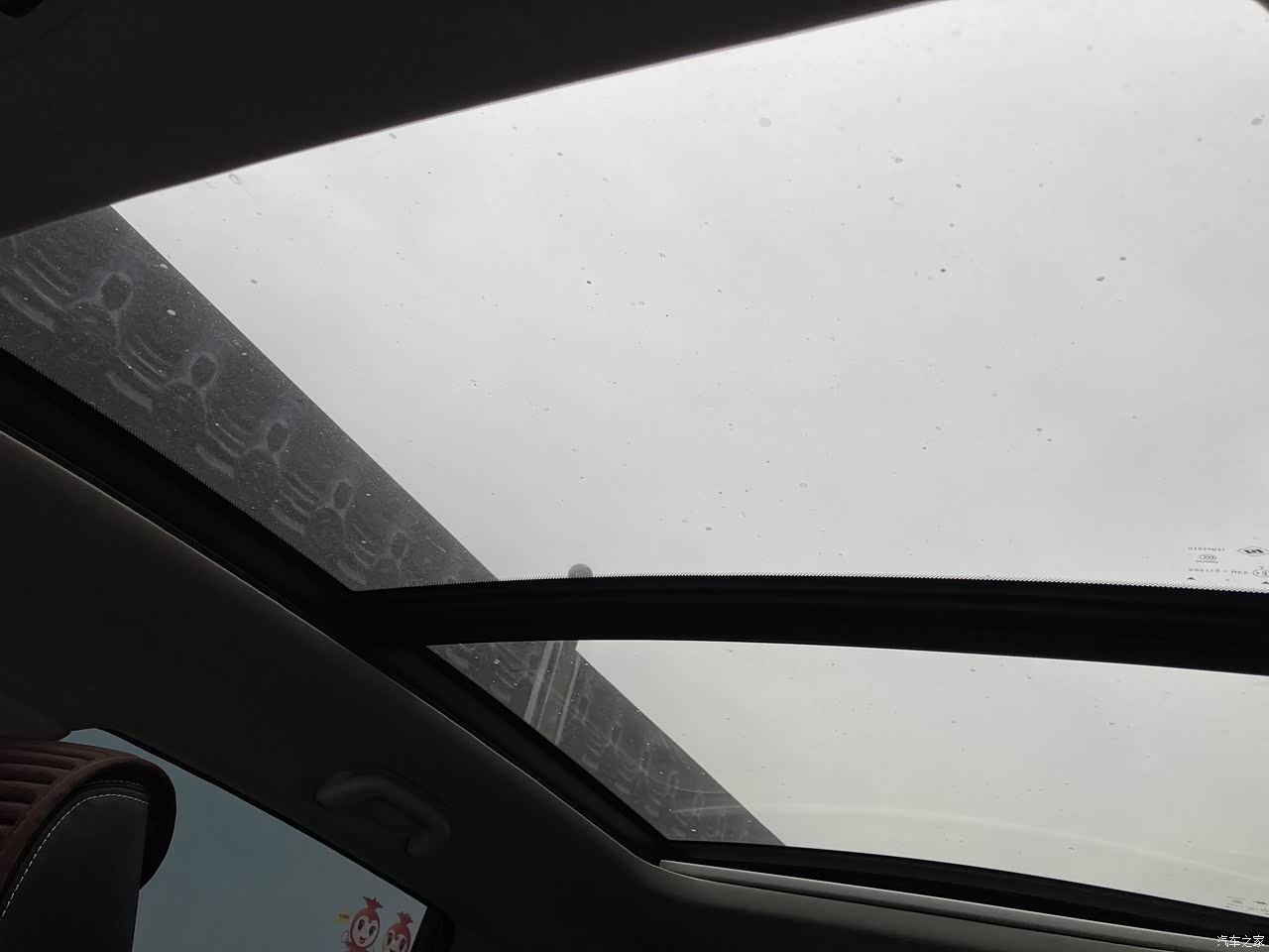 天窗是全景的,老人坐后面晕车就打开遮阳帘,一定程度上减少不适。