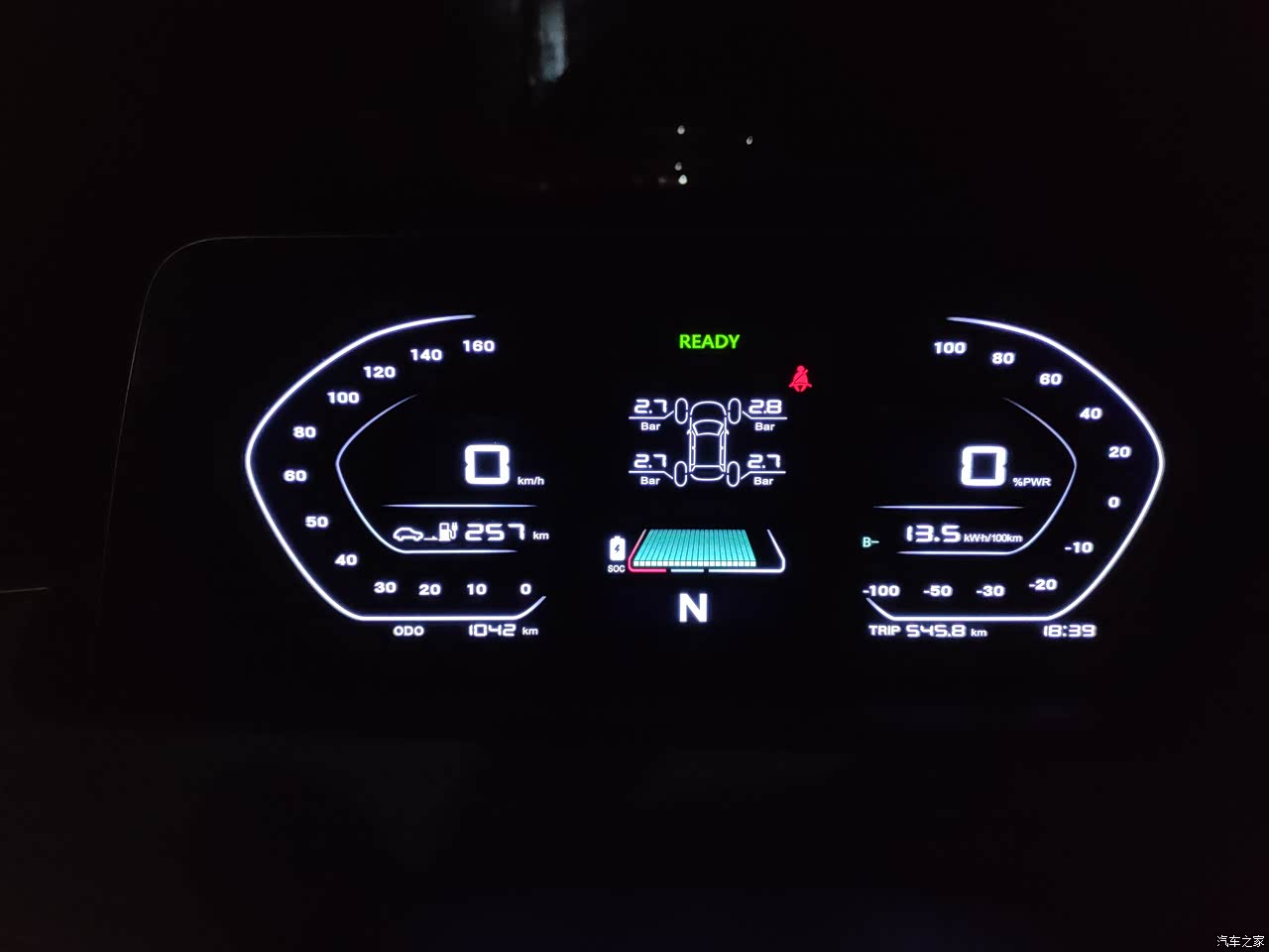 百公里电力消耗数值,比油车的百公里油耗要精确。日常使用开暖风4格,风力3格。车载两个成年人300斤。