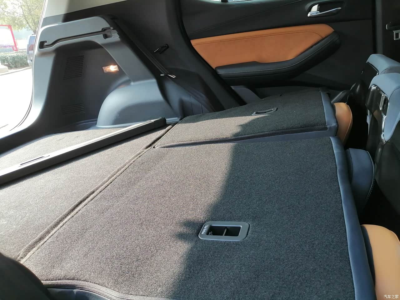 后排座椅头枕按钮按下去,座椅就可以全屏放倒了,带东西也不担心