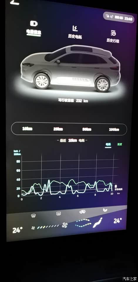 电耗的话还是不错的,春秋天电耗可以在13度/百公里这样,夏天冷空调影响不大,基本在14。而冬天热空调一开,电耗就比较大了,差不多得18-20这样,具体得看外界气温。图片是最低的电耗,哈哈。