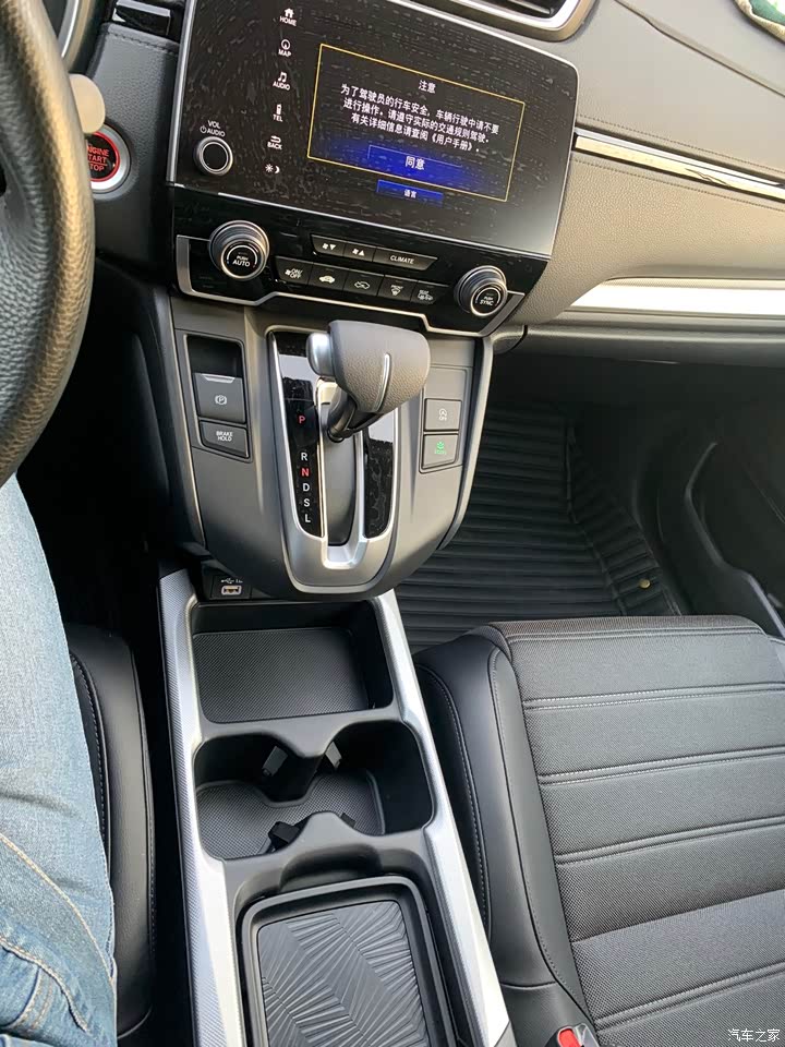 这是心仪CRV的一个很重要的原因。之前开福克斯跑个远路,坐很多人,随手的小东西没地方放。CRV把挡把设计到上边,地台空出来全做了储物格,非常合理。这也是没去看皓影的原因,档把挪了地方,空间却只有俩杯座和一个槽,感觉不太合理