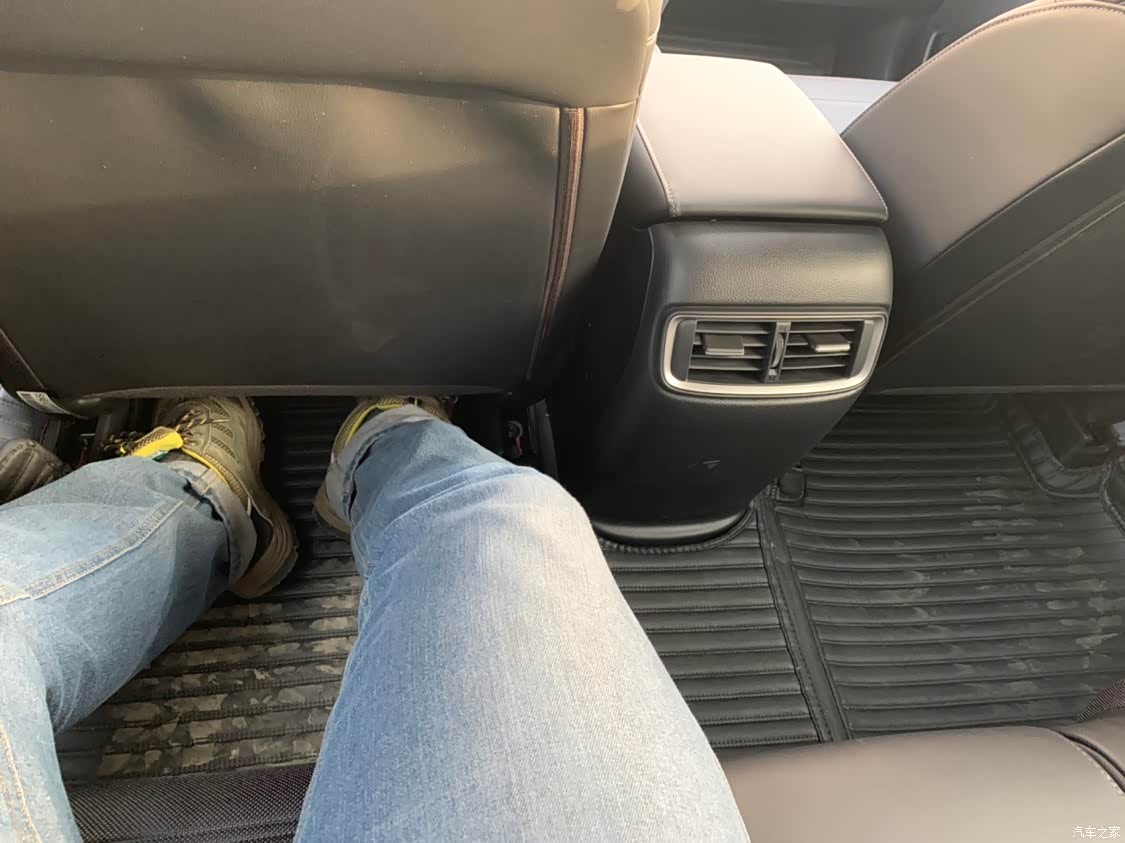 我身高175,前排调整好(我喜欢半躺开车,方向盘拉到最后那种),后排腿伸直基本上脚刚好到前排椅子下边。地板基本纯平了,铺上脚垫凸起几乎不明显。