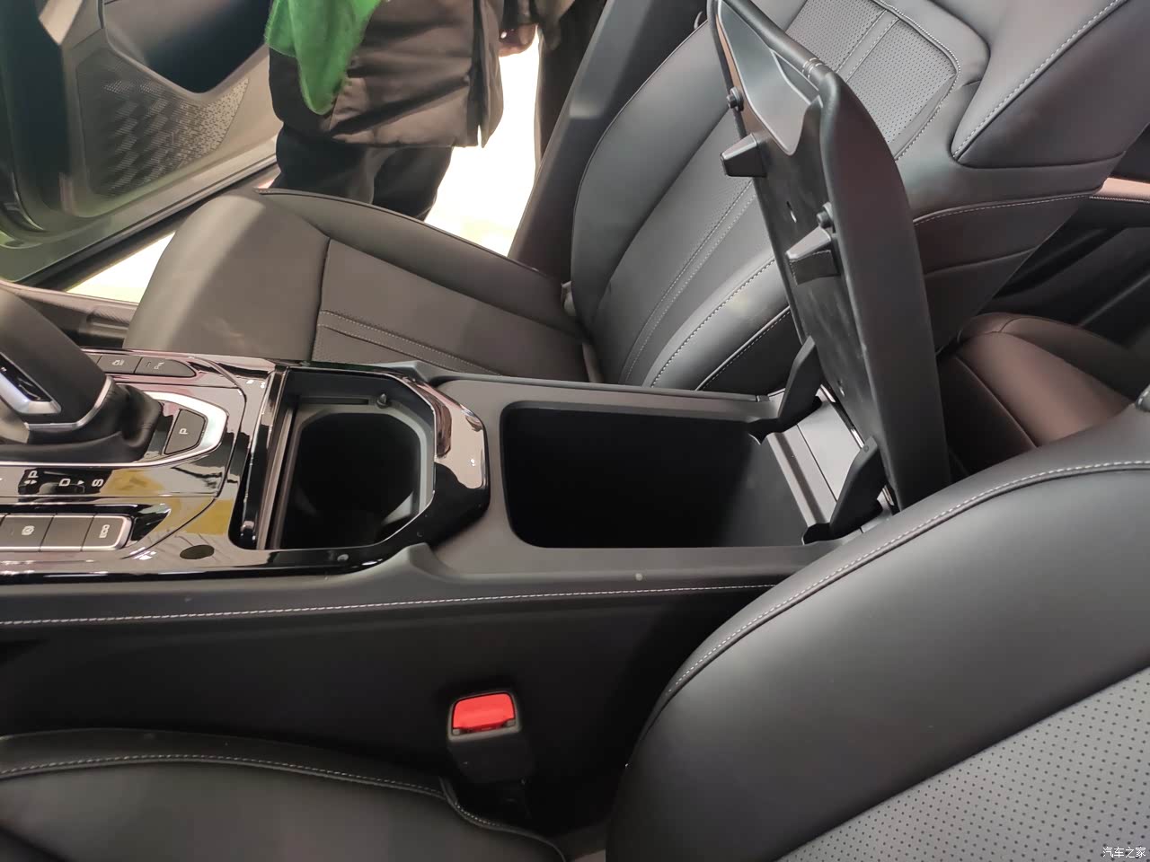 是这块儿比较简洁,采用的是一个糖塑工艺,关键是他这个嗯,用的大品牌没有污染,异味儿比较小啊。再加上这个台采用的这个顶配带电子档杆的设计还是比较科技感比较强。