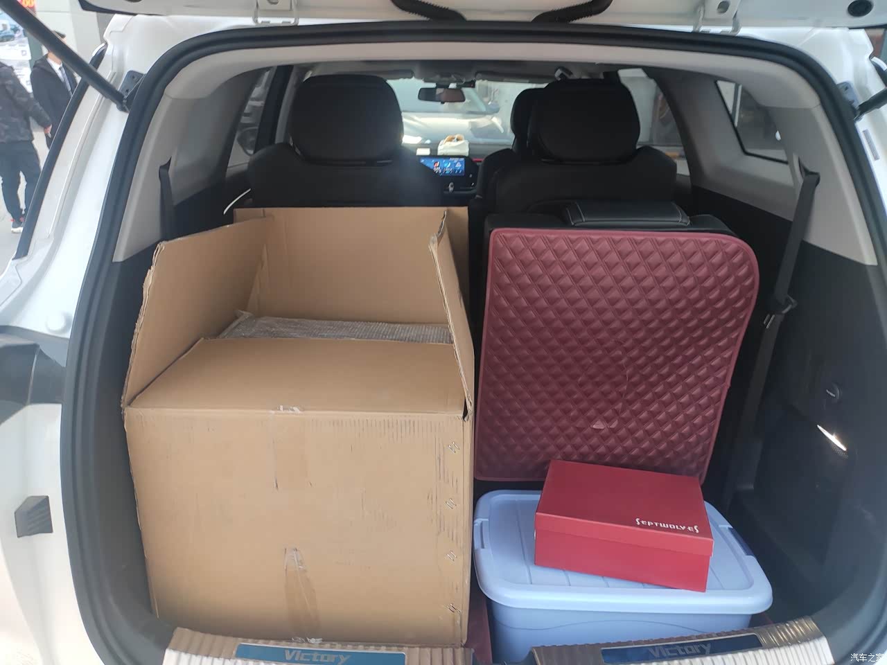 这个车最满意的就是我觉得在它的油耗这块儿比较节省。而且第二排的空间这是它的一个亮点,第二排的空间支持这个前后移动,一般情况下第二排如果是把第三排放倒,第二排的空间非常宽敞,可以可以前后移动五六十公分,而且可以左右移动。第三排如果坐人的话,他的这个后备箱也后面有一个。底下有一块儿空间,那第三排的空间,第三排的这个空间。腾出来以后后备箱也特别大。