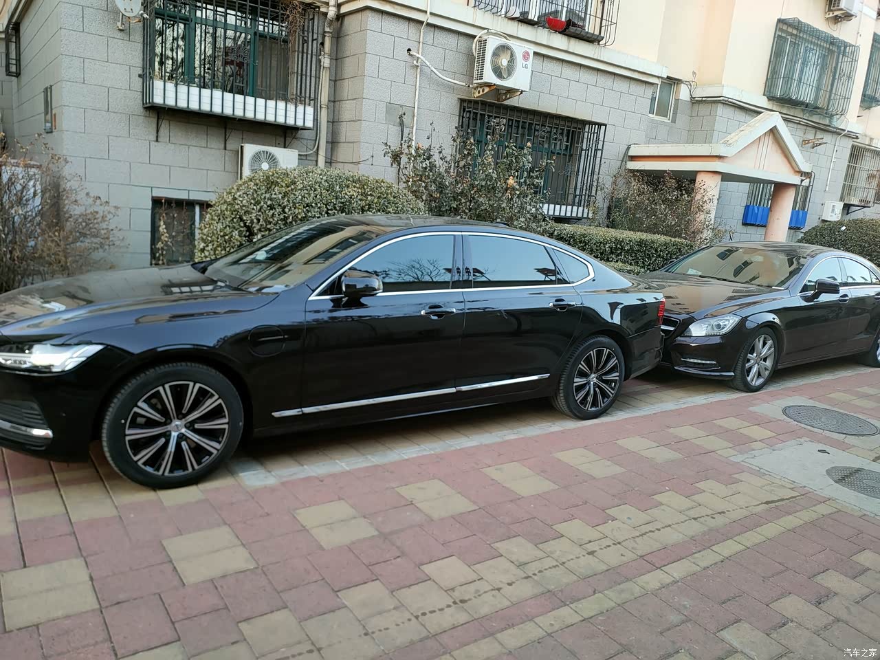 后边是奔驰c260,s90气场确实大,轮毂也很好看,换了不锈钢气门盖,颜值更棒了