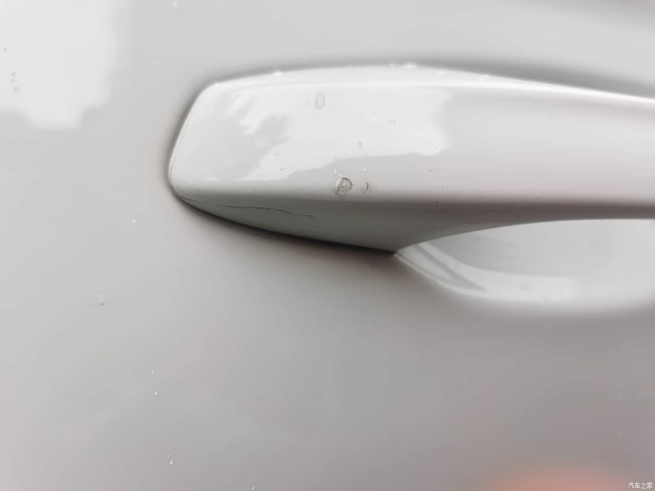 一句话简而言之:非常满意。包括对车宽的适应已经完成,没觉得有很大压力。到目前为止我不满意的只有两点:一是车机和导航,这个在我第一个帖子里面已经提到,但是由于我目前都在使用hicar,所以问题不大,但为啥我还要提,是想督促大众尽快弄个能用的软件出来,别白瞎了这么好的硬件。二是这个车的挡泥设计不够科学,我算是比较不爱干净的了,原来的车也是经常轮眉边缘溅到有泥。但途锐比较过分,轮眉有泥正常,但前后门把手和车窗玻璃上面都能溅到泥就比较过分。先说明我上下班和活动范围都不存在工地一样的环境,就是偶尔会经过城市市政施工路段,地面有水而已。我现在有点犹豫装不装挡泥板,等过段时间雨季到来我再评估一下,能不装我是尽量不装的。这次主要是讲讲隐形车衣的事情,应该说,车衣装了还是体现价值的首先是右后门,这个是右后门的情况:当时是娃没关好门,我也疏忽了,车启动时门直接磕在墙角上,然后回弹碰的一声关上了,我当时想,惨了,门肯定会有一道明显的凹痕。结果一看,还好,只是车衣破了个小口,我确定了一下,里面的漆面都没事。可能是车衣本身有一定弹性,抵消了撞击。