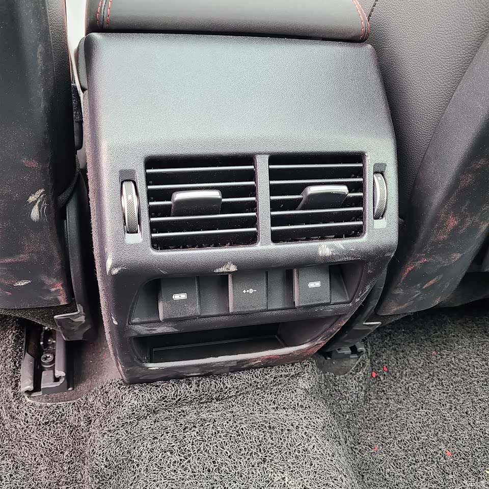 后排出风口做的不是很大,不过出风口下面也可以充电啥的,都有口子。