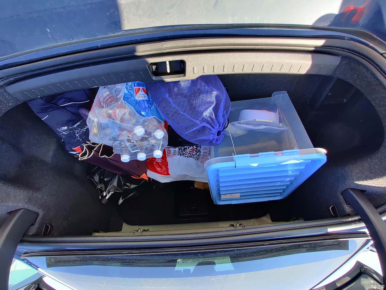 后备箱空间属于正常级别,我在里面放入了一个大箱子,一箱子水,这些空间是足够使用的。