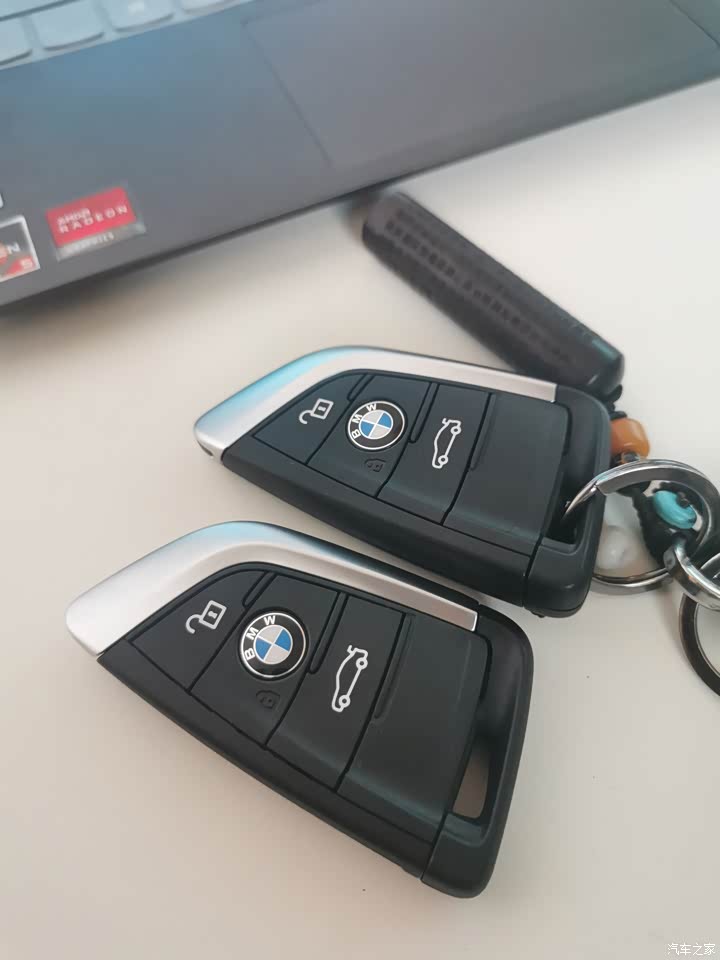 车牌是我自己上的,之前有看到网上说宝马1系车牌上不紧,各种松松垮垮,各种掉牌。最后问了4S店的销售,说把螺帽加上去就好了。 上牌的时候,特意网上搜了很多视频查看,前面螺丝孔够深,可以直接把螺丝拧上去。 后面孔距不够,我加了泡沫胶,先粘住,然后卡扣里面套了螺帽,再拧螺丝果然拧紧了。没有出现网上说的车牌松动的情况。 最后,上一张钥匙照片认证一下。