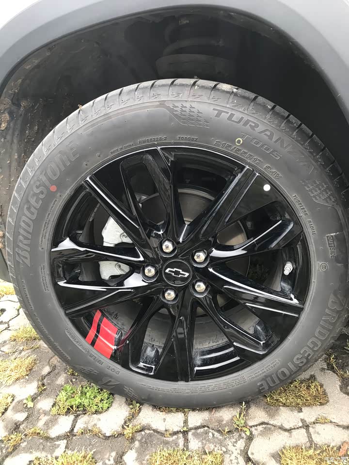 轮毂是亮黑色的,加了一抹红色,格外运动。