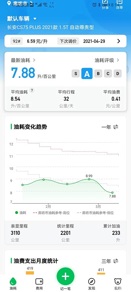 今天去做的首保,这是高速油耗