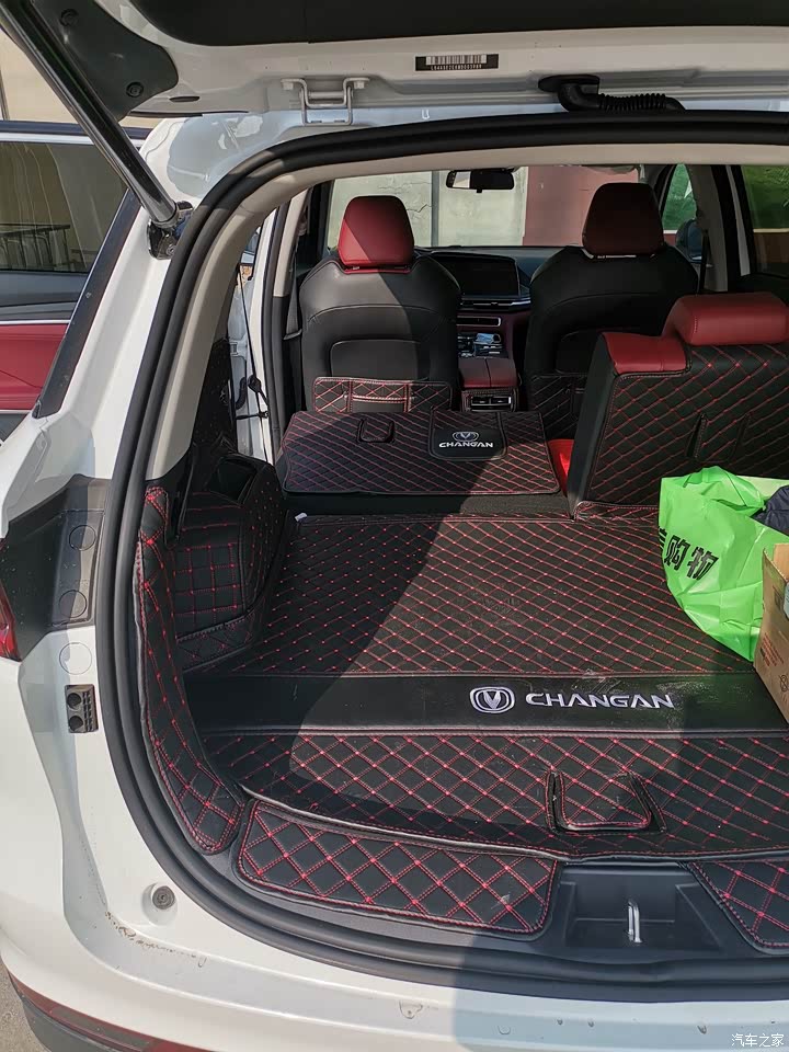 最满意的就是空间大颜值高,外观时尚运动。贯穿式的日间行车灯,点亮后非常漂亮,辨识度非常高。 全系标配的LED大灯亮度高,夜间照明效果非常好,大大提高了夜间行车的安全性。 还有转向辅助灯,在转向时会亮起提高了安全性。 车内黑红搭配的内饰,非常漂亮,高端大气上档次,用料实在,手可以摸到的地方几乎都是软质包裹。 座椅设计软硬适中,包裹性和支撑性都不错,坐着非常舒服。 后排地板纯平,做三个成年人没问题,而且第二排的座椅靠背可以调节,大大提高了后排乘客的乘坐舒适性。 第二排还有出风口、USB充电、中央扶手、杯架等人性化设计,乘坐舒适性大大提高。 后排坐椅放倒后,后备箱空间特别大,拉点大件物品非常方便。电动尾门一键开关,非常方便实用。 三大件稳定可靠,底盘扎实稳定;蓝鲸发动机荣获十佳发动机称号;日本爱信的AT变速箱皮实耐用,换挡平顺。 刹车线性,方向盘指向精准,没有虚位。 主副驾驶安全气囊,前后排侧气帘安排到位,安全性大大提高。 车载微信非常实用,不用低头看手机,提高驾驶安全性。并线辅助、车道偏离预警、疲劳驾驶提示都是些非常实用的功能。 全速自适应巡航在高速驾驶、市区跟车非常好用减轻驾驶疲劳,提高了行车安全。 这么大的车自重接近1.7吨,油耗8.5左右(城乡结合道路)实属不高。 音响效果不错,听听音乐减轻了驾驶疲劳,心情美美哒!!