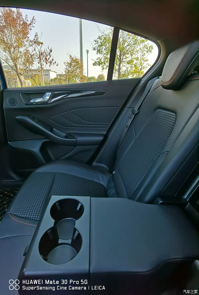 后排中间有手托,和全景天窗,如果后排坐两人体验感不错。