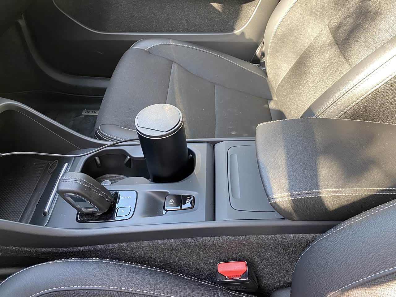 前排扶手箱也很深,还标配一个侧面带网兜收纳的小垃圾箱。
