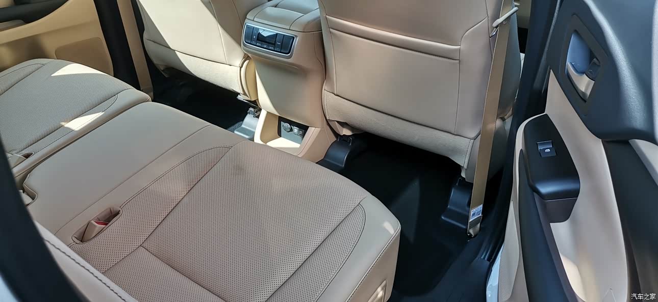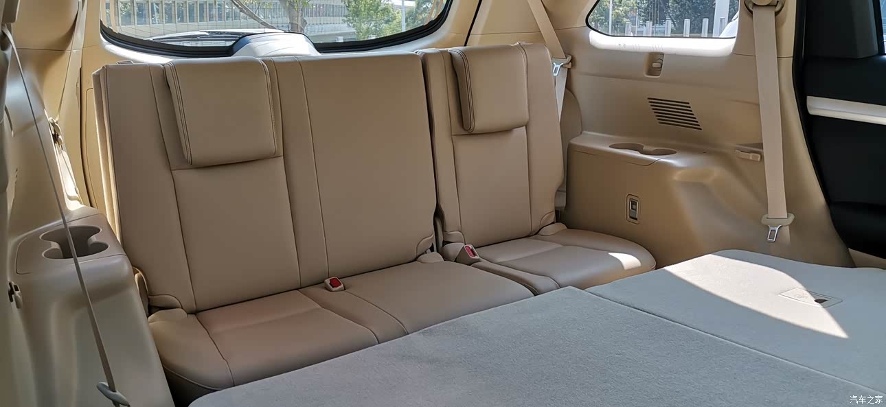 前排第二排空间还是挺大的,第二排的话,坐大男人会偏挤一些,一般父亲就坐二排,母亲坐第三排,刚刚好,但如果坐上7个人的话,后备箱就会小一些,放的东西比较少,如果是出去玩几天的话,后备箱就不够放东西了。前面的座位有空间的,就需要放一些小东西了。