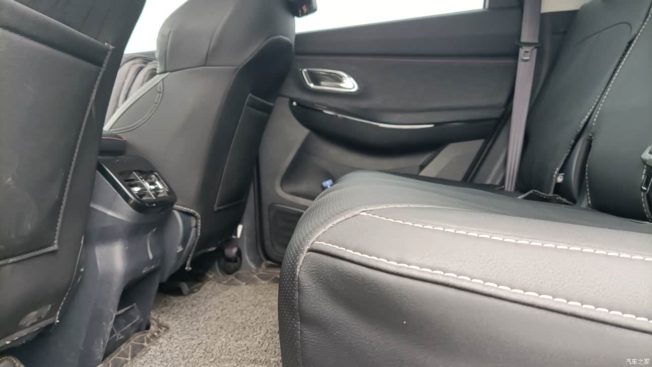 由于X7本身空间大,所以坐在车里面不会感觉拥挤,座椅有点家里面真皮沙发那种感觉,包裹性很好,后排地板纯平,后排座椅可以调节,满足后排乘客多坐姿选择,后排有空调出风口,不错的配置。
