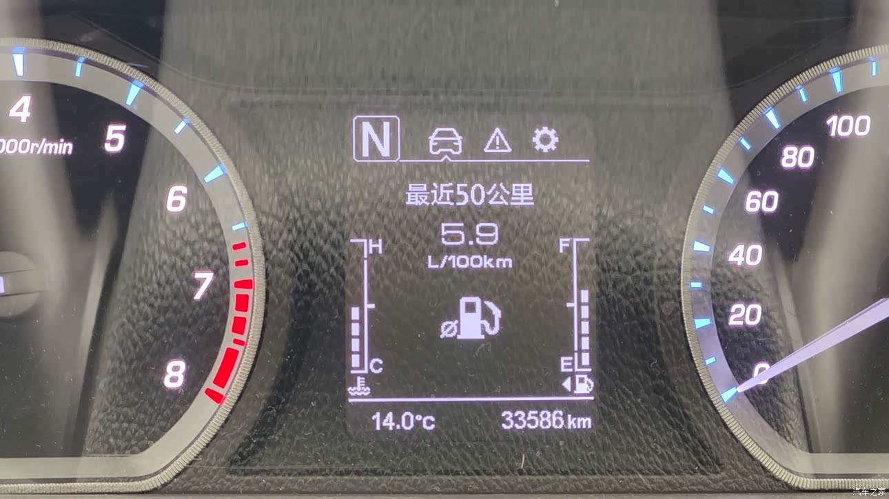 买车前就查过参数,我觉得:这个大块头就算设计再怎么有流线型,风阻这块肯定也是比不过轿车的;235的胎宽也不可能像自家原来的日系车纤细型轮胎那样避开更多的摩擦力;另外,1.6吨的自重比我原来的车足足重了300公斤,这个体格怎么也不会太省饭。虽然不少车友晒图说这车百公里油耗可以达到8个多,但我基于这三点考虑,买车前心里只求百公里油耗不要超过10个太多。买车后,我测试了一次油耗。当时我车上“平均油耗”(非“近50公里油耗”)显示9.9,和我自己计算的结果非常相近,可以说油耗显示不算网友们常说的“欢乐表”,而车的油耗也在我预估范围内。说明:因为没有拿到牌照,全程没有上高速公路,一直在市区行驶,过年期间市区没有堵车情况,但红绿灯较多;测试使用的是车上的“舒适”模式;没有开空调;本人也没有长时间怠速不熄火的停车习惯。