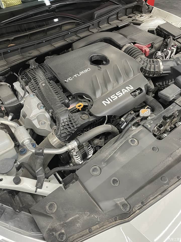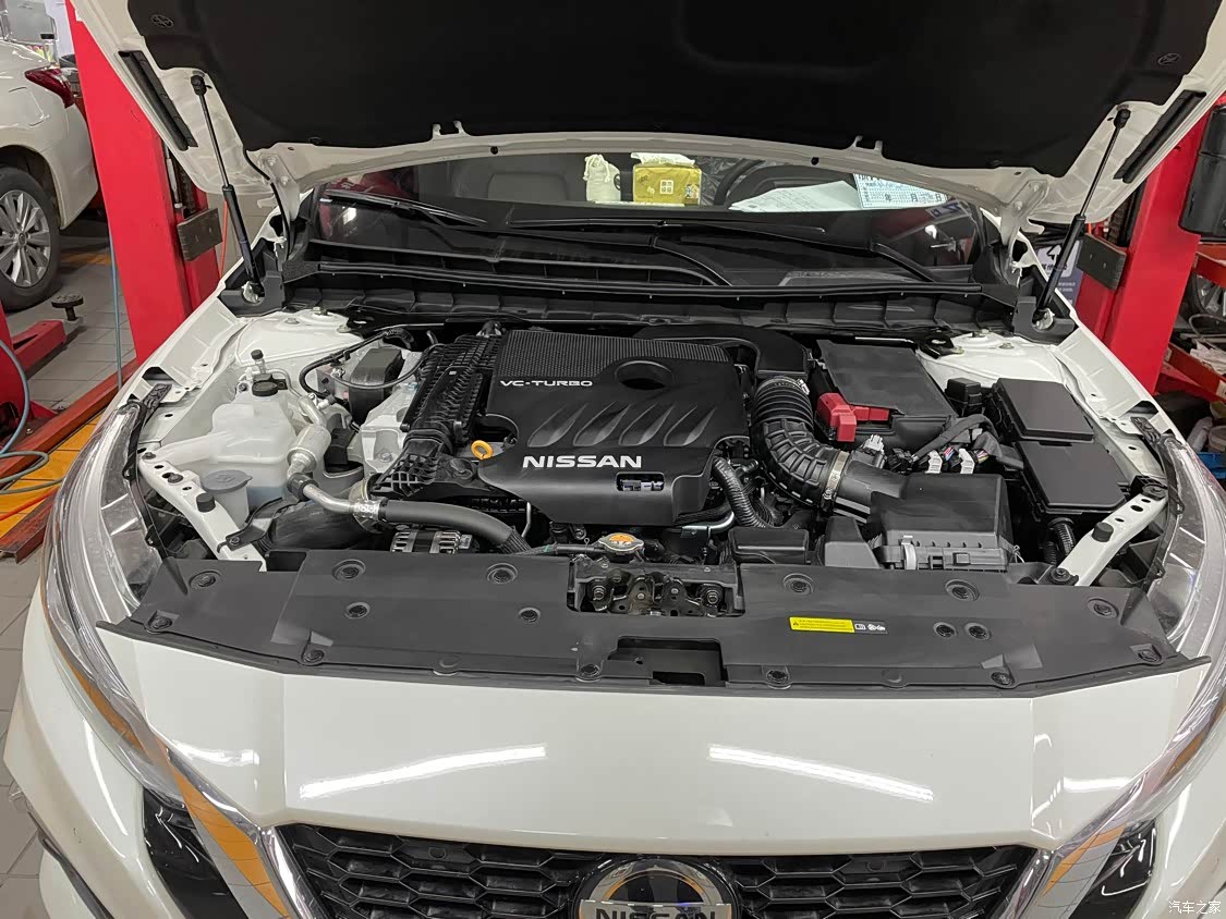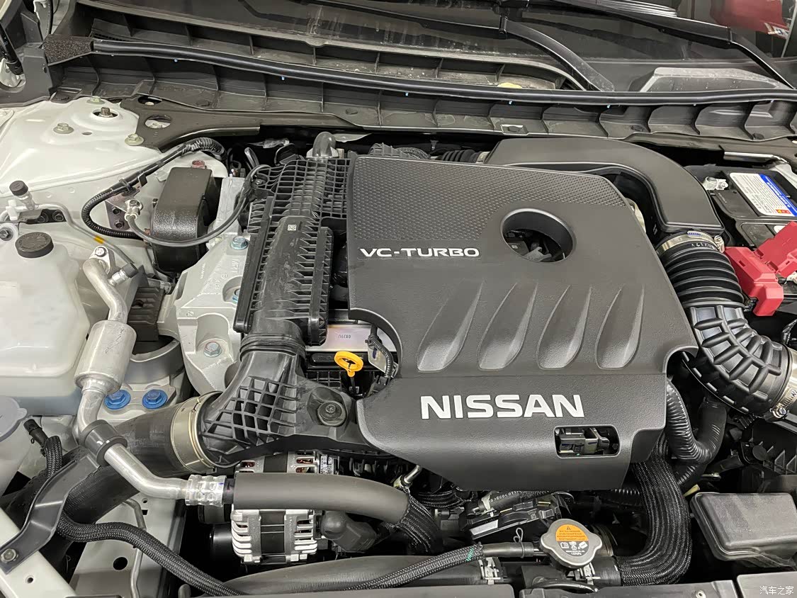 天籁的发动机舱塞得慢慢的,VC-Turbo发动机展现出强大的机械工业美感。