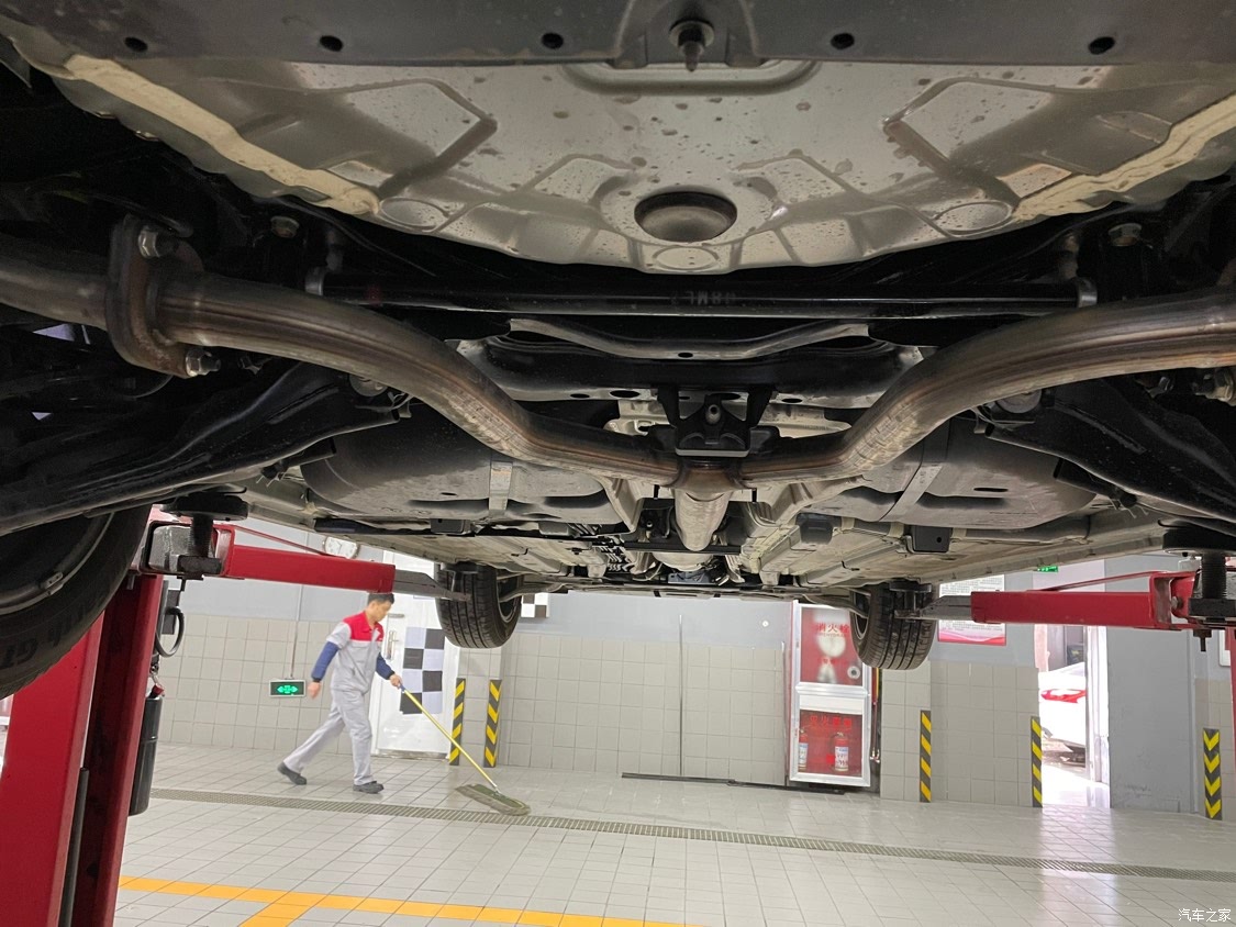 2500公里首次检查,看到了天籁的底盘。天籁底盘相当工整,清爽。前悬挂感觉像是铝合金的,后悬挂非常粗壮。动力系统底盘干净无油渍,体现了天籁身上的一些机械元素拨。可变压缩比涡轮增压发动机,塞满了整个机舱,提供源源不断的动力来源。前引擎盖双液压顶杆。还有一些不知道什么名字的油路、电路等,充分显示汽车工业强大的机械美感,是科技的集大成者、是各个专业的融合、是技术的完美协作、是“技术日产、人、车、生活”的最好诠释。