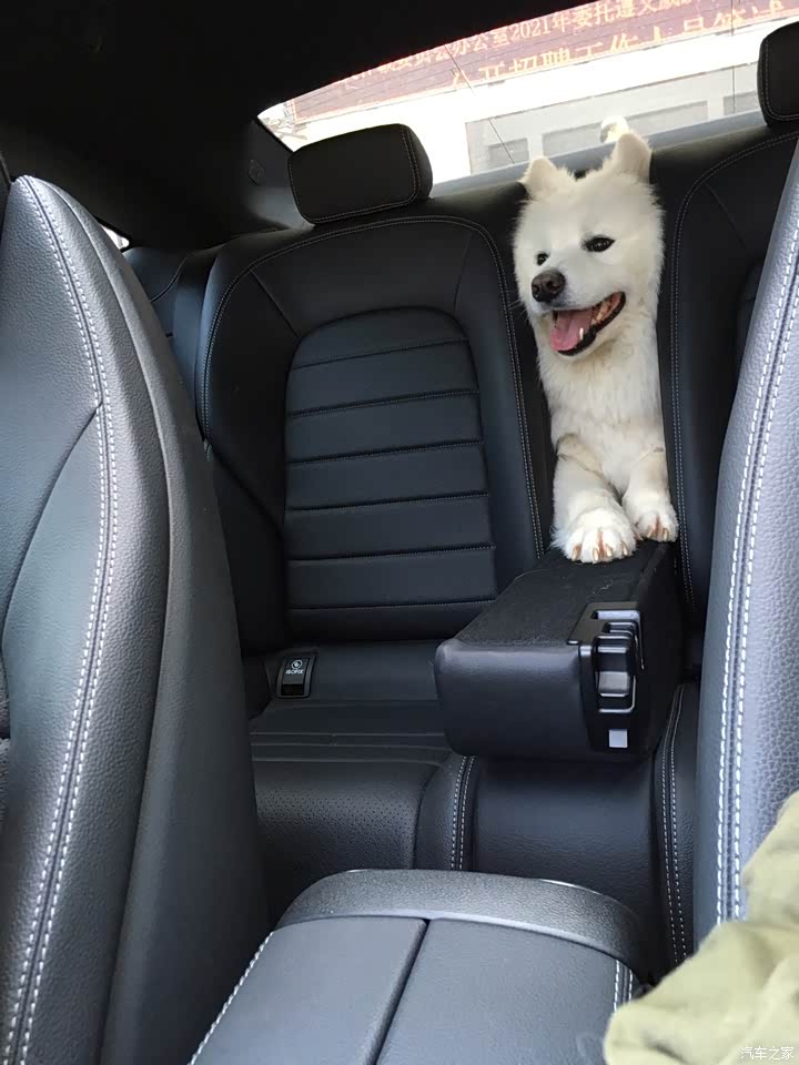 前排储物空间说实话设计得捉襟见肘,也就能放个手机,放瓶饮料🥤,不过开车时都是投屏,好像能放个手机就行了,觉得奔驰对五十万以下车配置很抠门,无线投屏都不愿意给个(怨念很大)……方向盘左侧有设计卡槽,现在都ETC了放加油卡吧。 后排和后备箱空间以轿跑的标准来评价已经足够优秀了,大家都关心的后排乘坐空间:乘坐两名正常体型成年男性腿部空间略微紧张,女性则正好。行驶证上就有说明设计为四人乘坐。防爆胎所以后备箱没备胎,备胎处在电机上部成为了储物格,空间充裕,后排能放倒,装载货物时非常实用,26寸行李箱能装四五个。有儿童座椅接口,正好没车门童锁都不用。让我家大狗子出镜展示一下,掉毛厉害直接用后备箱拉,养大狗子的都懂,后座能放倒很重要(划重点)