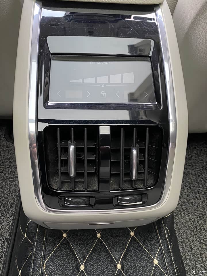 四区独立空调,后座的空调出风口很漂亮,下面好像有12V电压的接口和一个USB接口