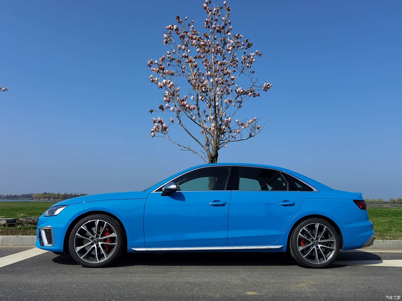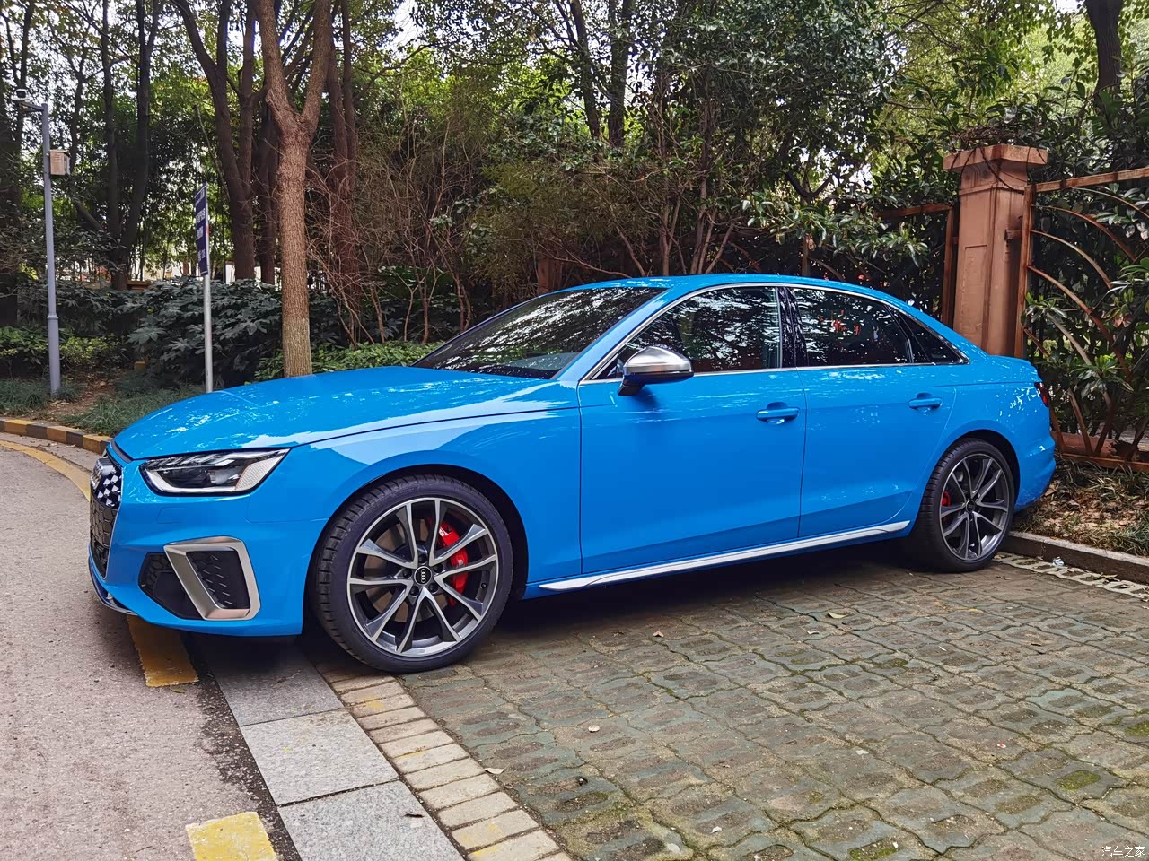 外观完美,很喜欢这种不太夸张的外观,银色的耳朵真的要比黑色的好看,流光蓝是完美的适配s4,红色卡钳选装我觉得很值得。碳纤维如果有一定要选2000多那个就够了,效果很好。 黑色高光包看车子颜色来选吧,不一定都匹配起来很好。