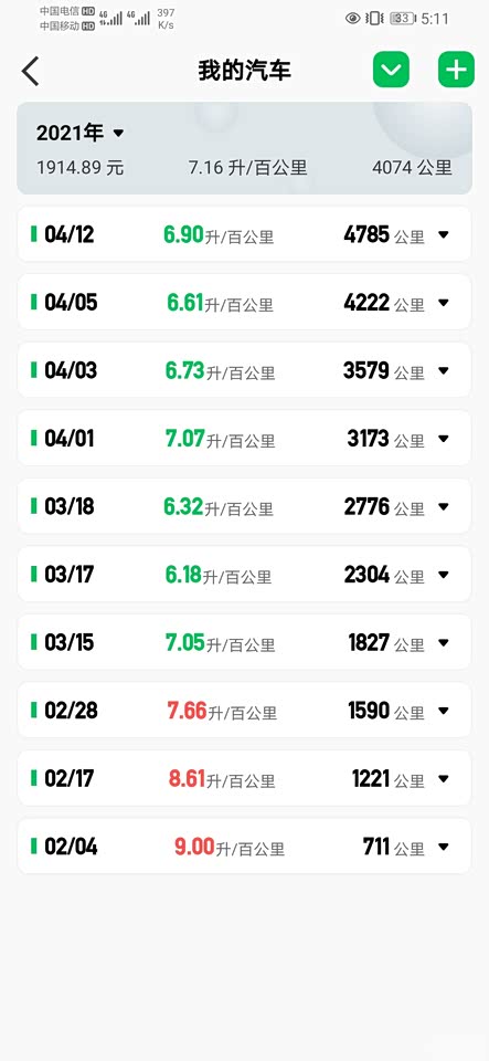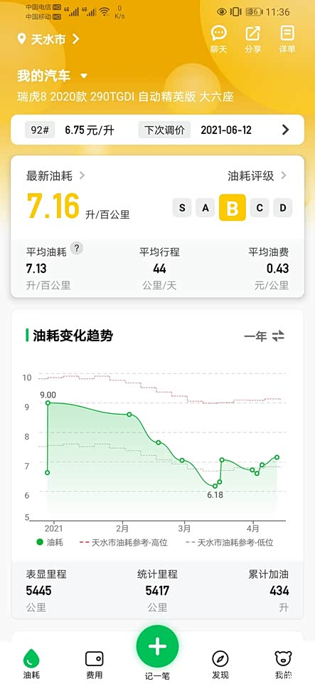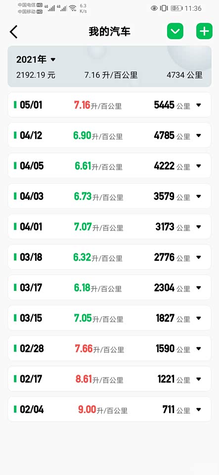 这是今年加油跟跑的公里记录,2成山路,2成郊区路6成高速的油耗吧。。。还是挺省油的