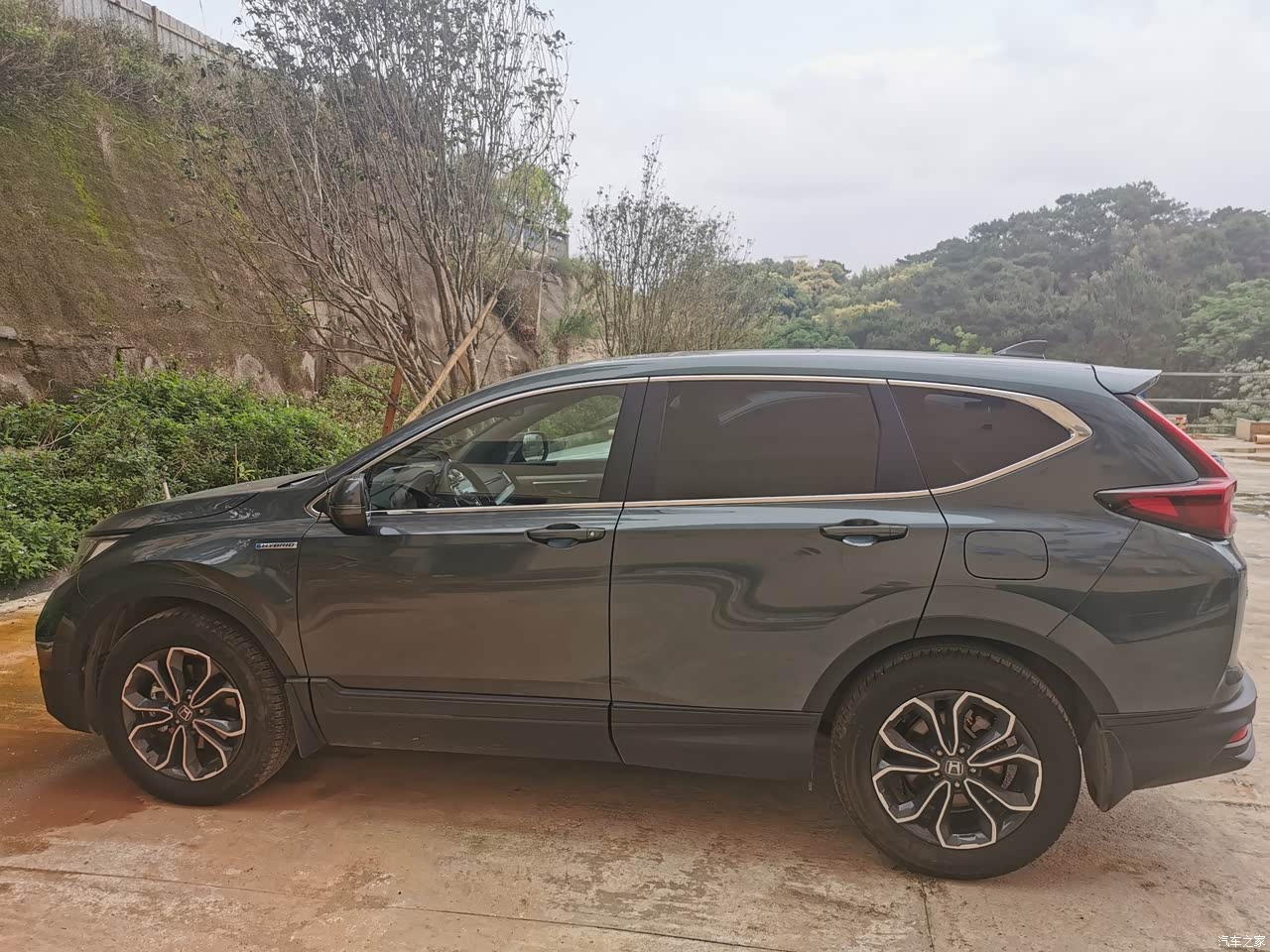 买车之前就确立了SUV,预算22到25万之间落地在马自达CX5,CX8和丰田威兰达,日产奇骏,本田URV,雪佛兰探界者中对比过,马自达CX5真是好车,操控一流(秒杀30万以内所有SUV,不接受反驳,喷子绕道!),创驰蓝天技术省油又耐用,AT变速箱超级聪明,外形也喜欢,是最让我纠结的一款车,缺点也非常明显,那就是后排空间太小!35岁成家有孩子,已经过了一味追求自己快乐的年纪,需要照顾家人感受,试驾过几次,每次有车展都去后排坐了坐,还是忍痛放弃,尤其坐进本田CRV的车内,我明白了它为啥这么受欢迎了!CX8优惠不够,落地有点小贵配置太低了,挺喜欢外观和操控,车子很大但是开车灵巧。奇骏四驱很好,就是车子有点老了,最担心的就是日产CVT,不敢冒险。丰田威兰达一直看不到展车,更别说试驾。后面看到路上有实车了,发现样子有点别扭,放弃了,荣放的前脸设计过度有点接受不了,车也是好车。探界者不管是外形还是动力还是很让我心动的,样子很硬朗爷们儿,美系车的质量稳定性还是堪忧,所以最后锁定日系了,毕竟工薪阶层就想图个省心。身边有朋友买过1.5T版本和油电混合版本,也都开过,只有油电混合 版本开起来爽,越级的存在。2021款改款后看起来更顺眼了,没有以前那么臃肿的感觉,所以当4S店有银黛灰这个颜色后,毫不犹豫就去交了定金,优惠下来落地23.8万,利息还优惠了1.2万,也没超预算,总体很满意这个新成员,买CRV一定要上混动,无论是驾驶感受和品质稳定性,以及后期成本,都是最明智的!