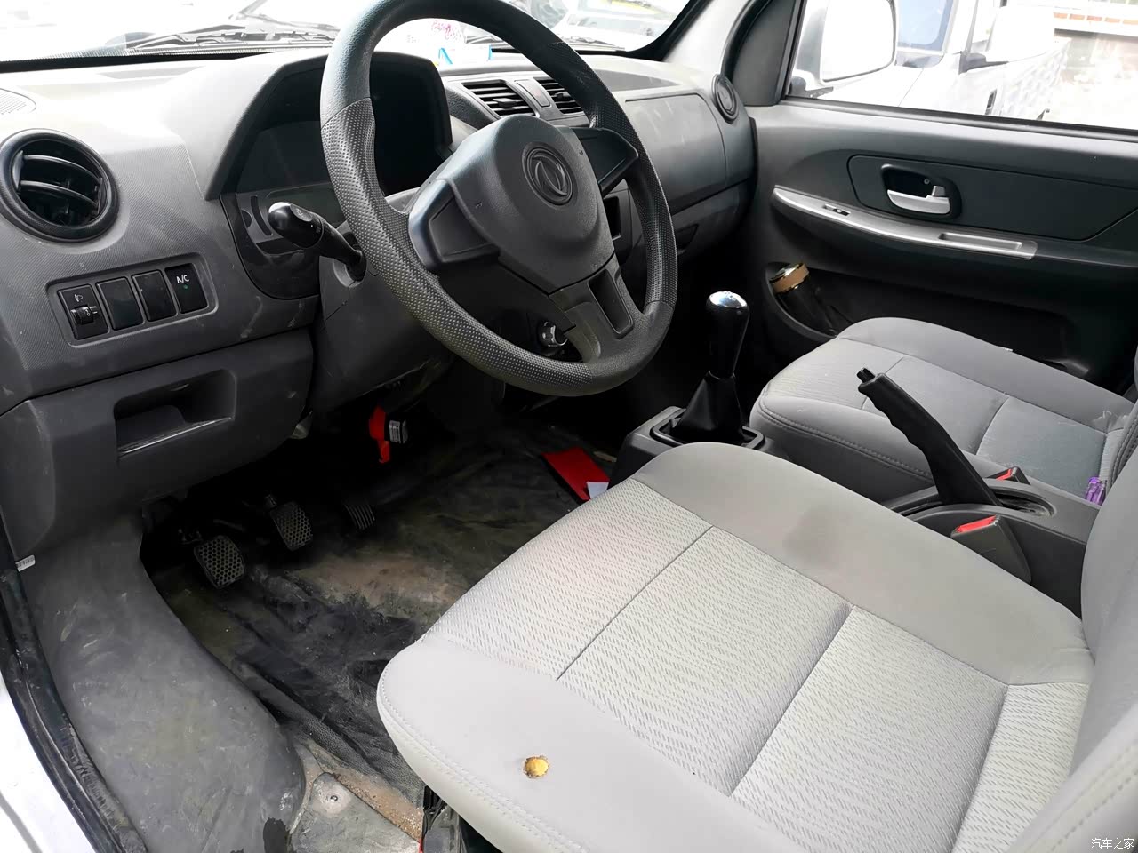 外观设计还是很有亮点的,家族式的前脸贾中网,配上东风小康的车标,很有辨识度。外观颜色是货车通用的银色,确实很耐脏,175R14的轮胎,弹簧板加宽加厚,整体感觉这款车很敦实。