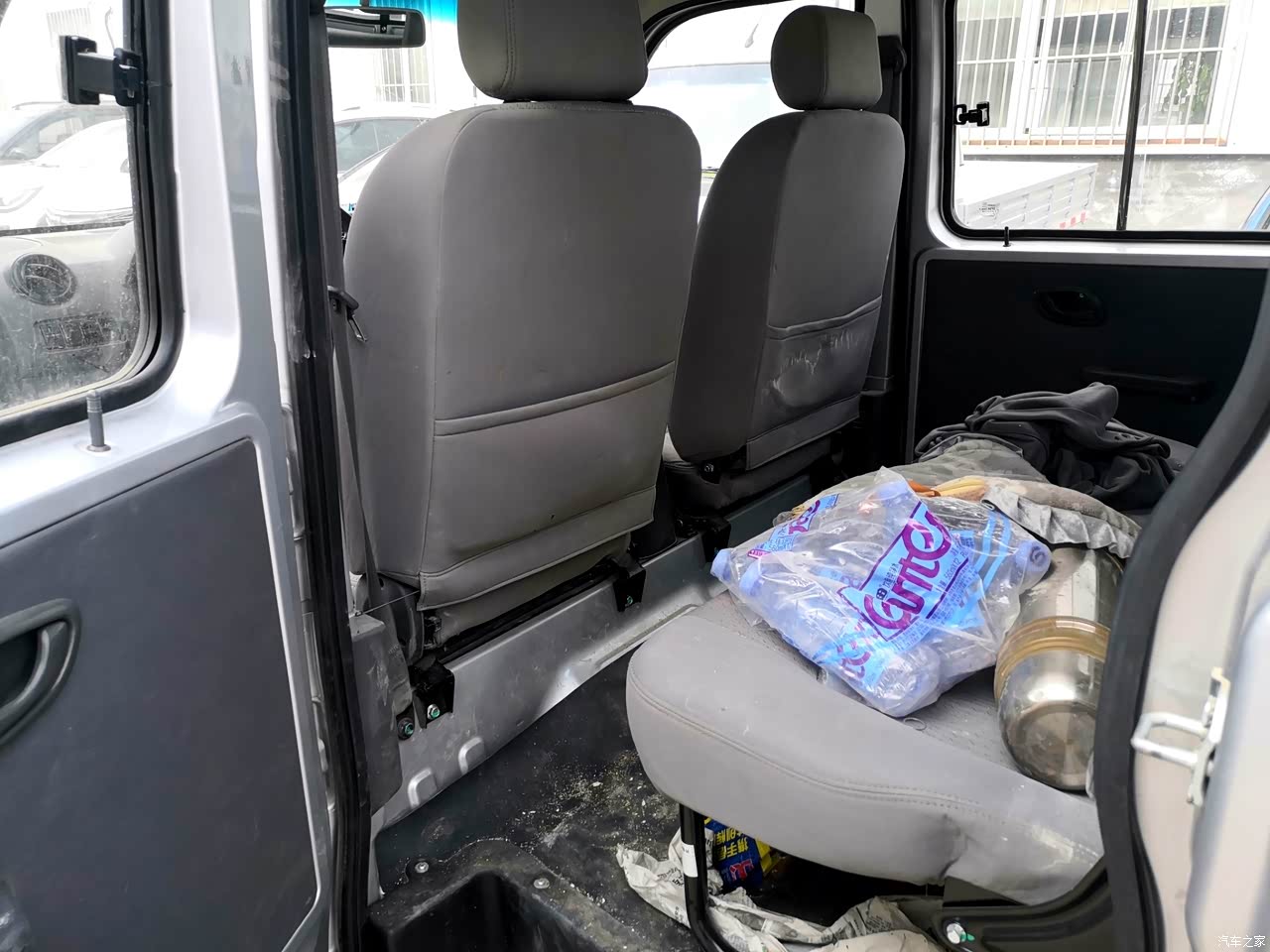 说说乘坐空间,空间还是很不错的,前排驾驶空间调整好舒适的位置,腿部空间很大,驾驶起来也比较灵活腿部还能活动活动。后排也没有想象的小,坐两个成人年没有问题,坐在里面腿部到前排靠背还能有一拳的距离。车箱的空间就不用说了,拉货那是杠杠的。