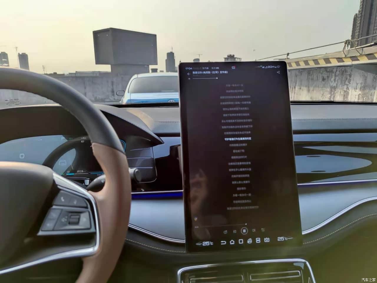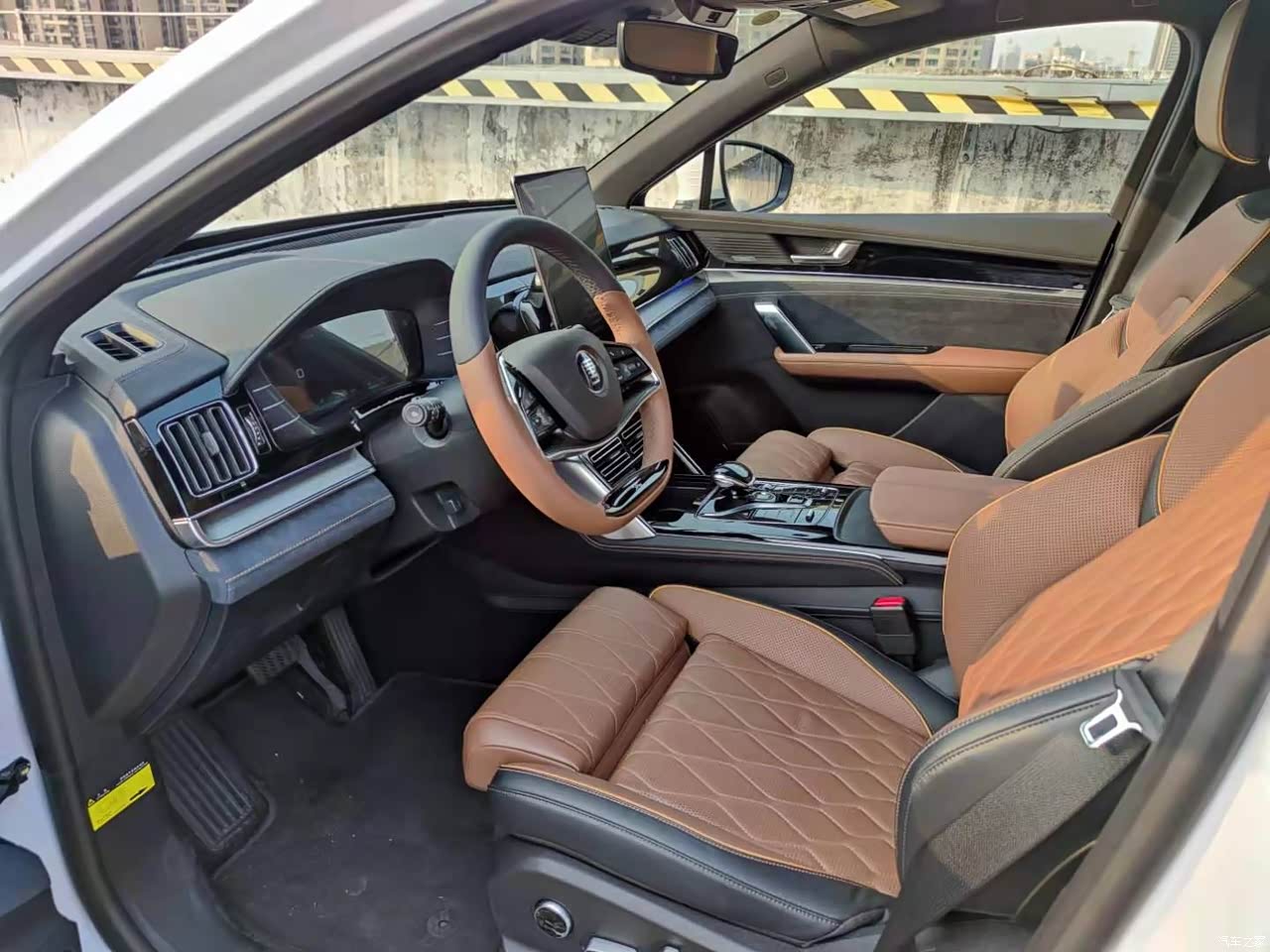 内饰也是叫麒麟棕,不是之前的黑色那么单调,也希望能出多点内饰颜色选择,搭配上氛围灯,提车到现在新车味道都没了,放了很多东西去味,大屏也是不错,开车不用看手机了,都可以在大屏上导航听歌,还可以唱歌。内饰摸到的基本上都是软材质的,也没有硌手的地方,小孩子在车上也不用担心碰到。