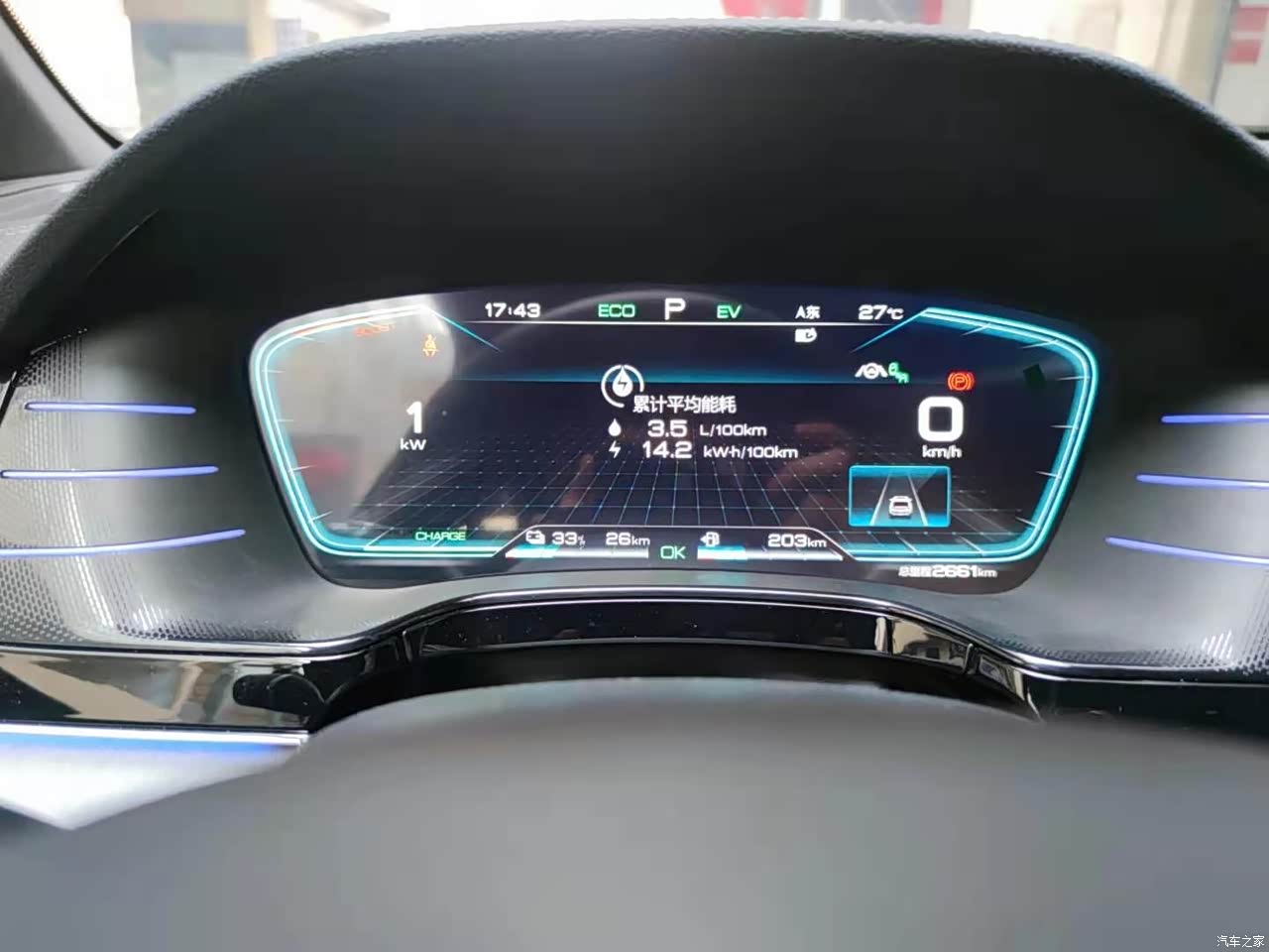 目前充满电行驶里程还是很满意的,毕竟是新车新电池,现在主要是用纯电行驶多,然后电耗显示会多一点,如果用油电模式就会拉平均的数值。