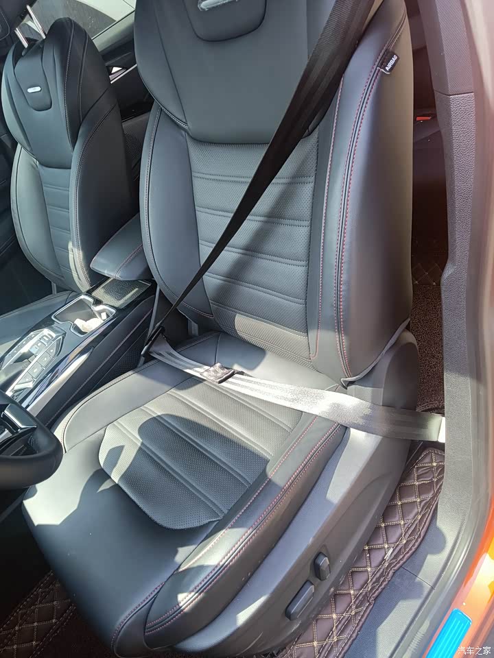 类似皮座椅, 大面积覆覆盖软包。不会割手。中控仪表简洁而不简单。