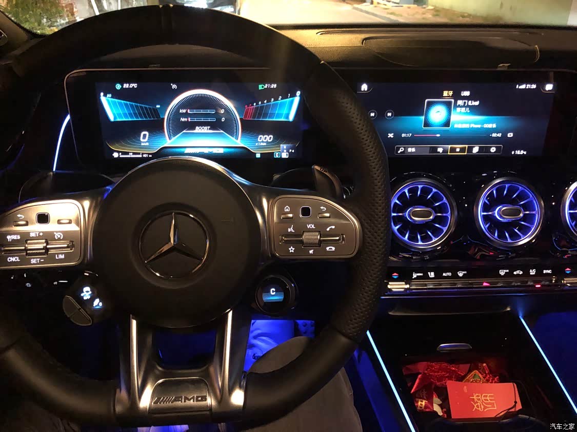 最不满意就是:1、悬挂有点硬,当然作为AMG车型肯定是以驾驶乐趣为主,这点也能接受。2、座椅红黑配的红色有点像汽配厂,看上去档次不高,黑灰都没现车,等的话说最快要3个月。3、可能新车未磨合完,也可能是我之前开自然吸气的车(我以前开的是道奇酷威2.4),感觉GLB35 AMG起步有点顿挫。