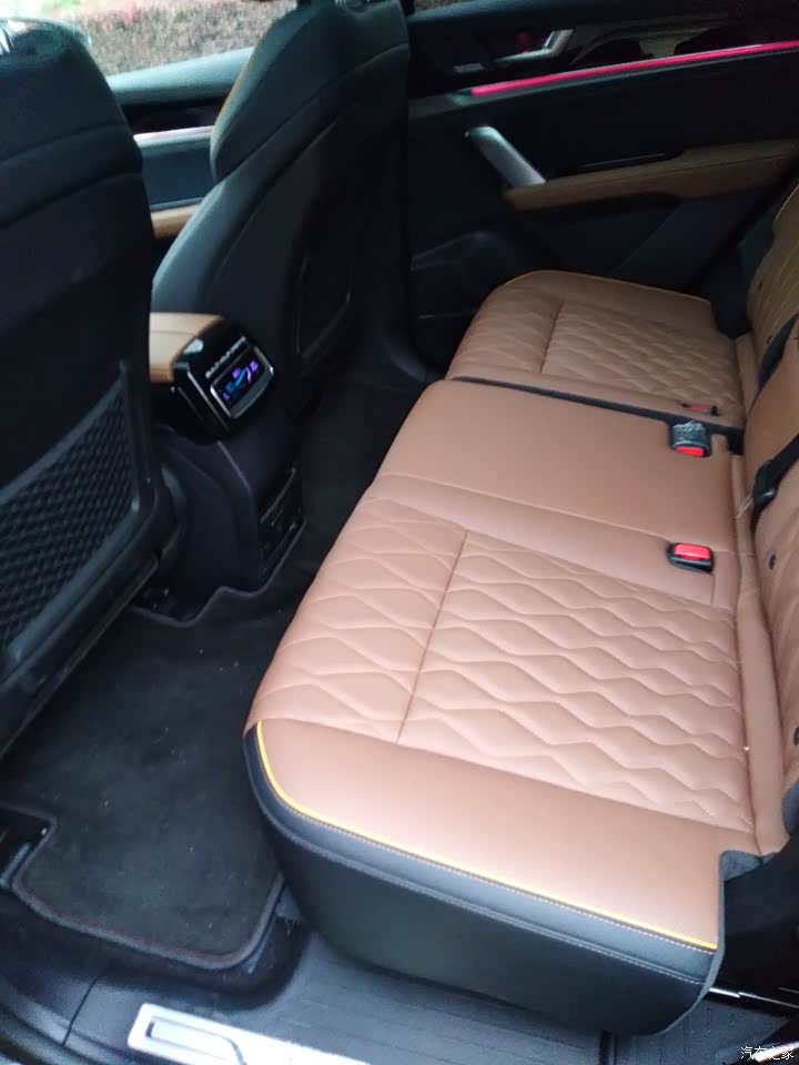 我选的是顶配旗舰型,配置真皮座椅,确实柔软,而且带腰部支撑和腿拖,长时间开始很舒适,空调有独立温区,后排也可以调节温度,第三排有点偏小,如果家用7座经常使用,请到店里实际体验以后再决定购买