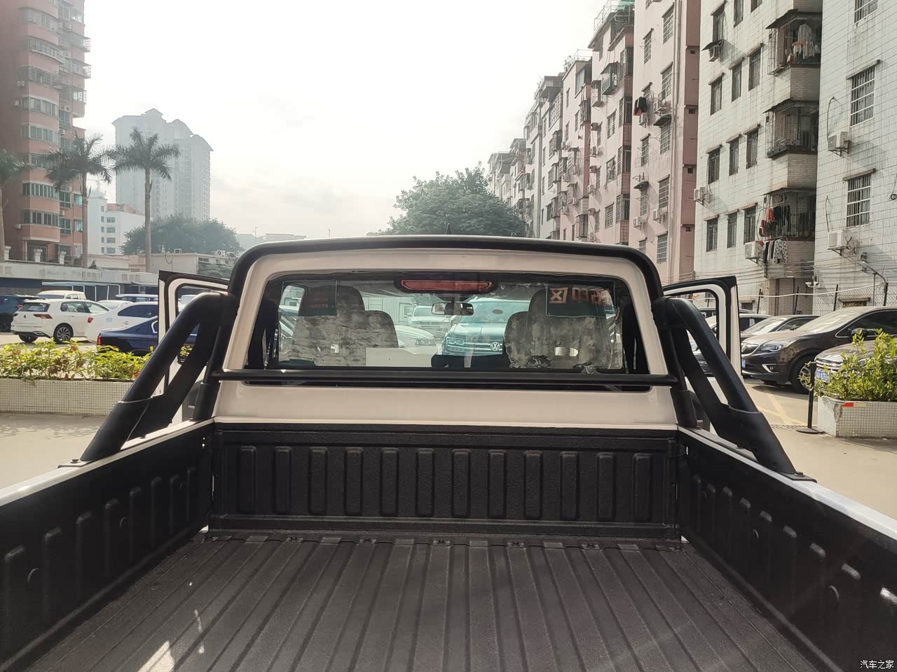 车内空间够宽裕,内饰是黑色为主,整体简洁大方,对于日常拉货载货很实用。