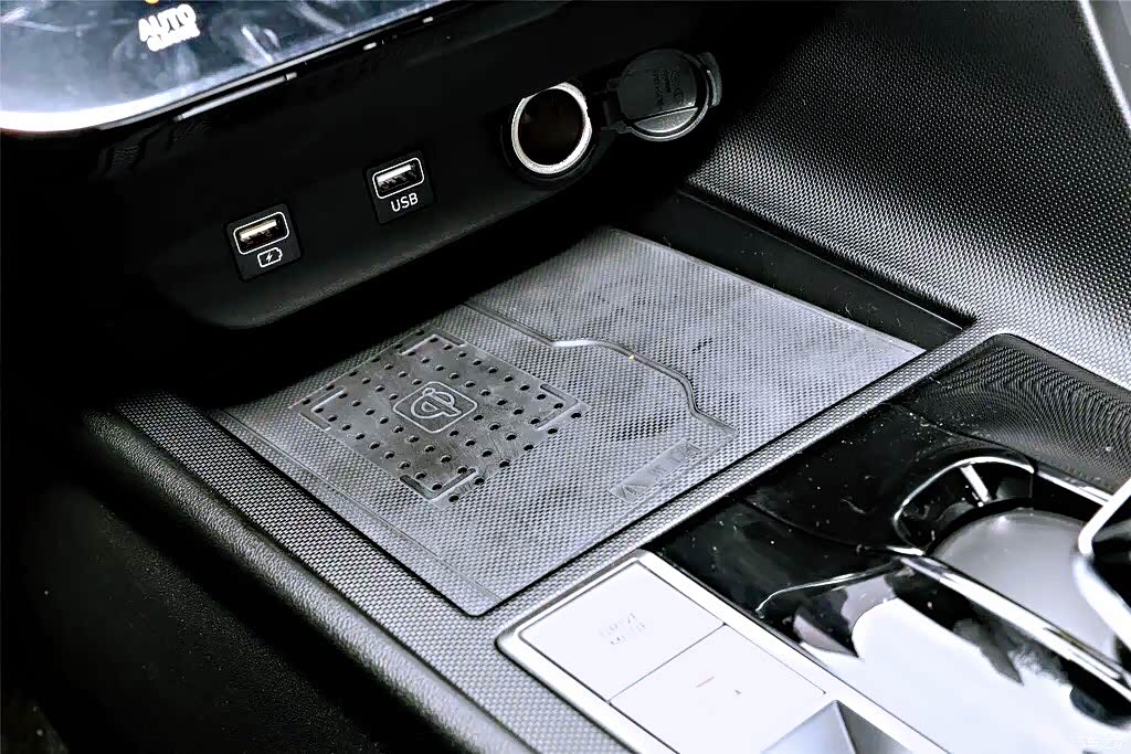 置物槽里融合了无线充电这个很好,而且位置特别顺手。上车随手一扔就可以充电了。试驾了其他车型好像都没有这个功能,其实挺好用的。