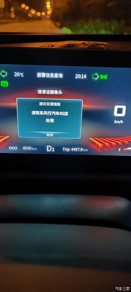 前天晚上开车的时候,半路突然报警音响起来,仪表显示请清洁摄像头,居然还要去4s店,我勒个去,我直接停路边擦了一下前摄像头,重新启动就好了。看来买这个车还要经常洗车才行,哈哈。