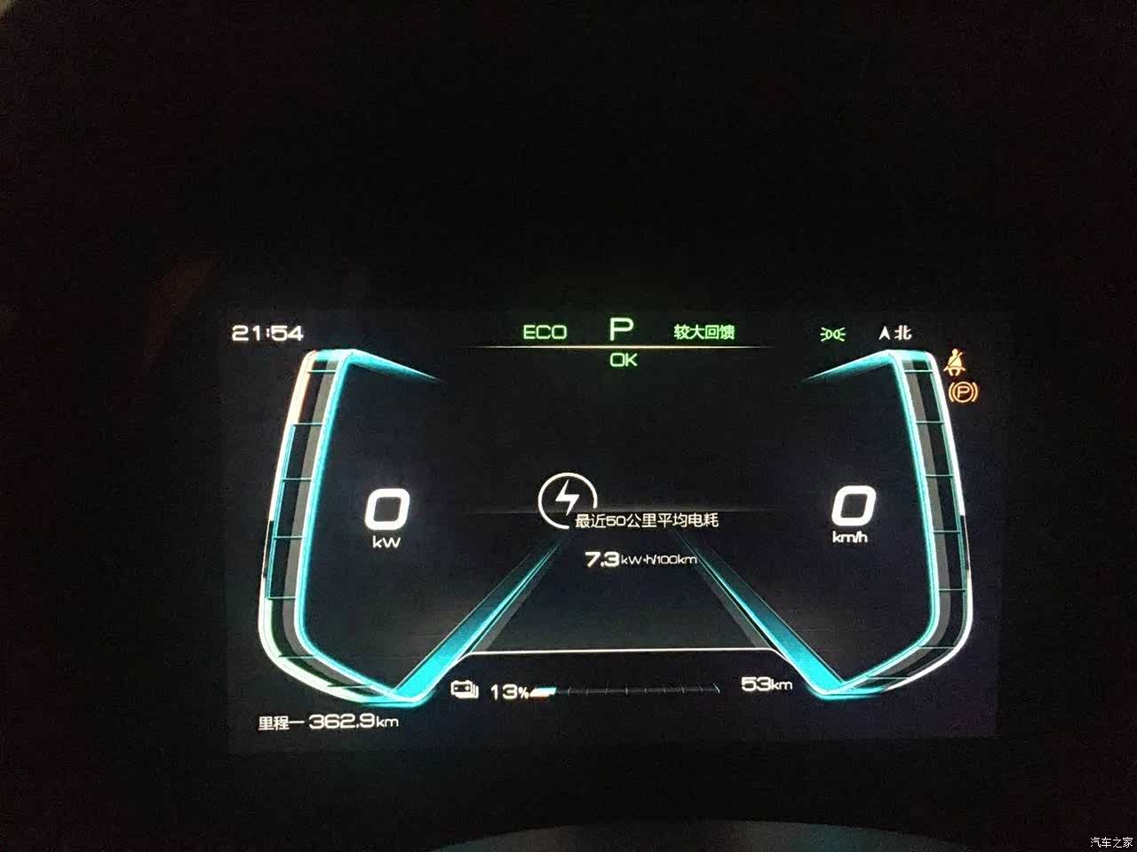 方向盘轻盈跟手,满电情况下刹车比较软,电量99%以后就会有动能回收,刹车力度就比较舒服了。底盘有些过软,有种悬挂拉不住车身的感觉,过大坑时候比较弹。