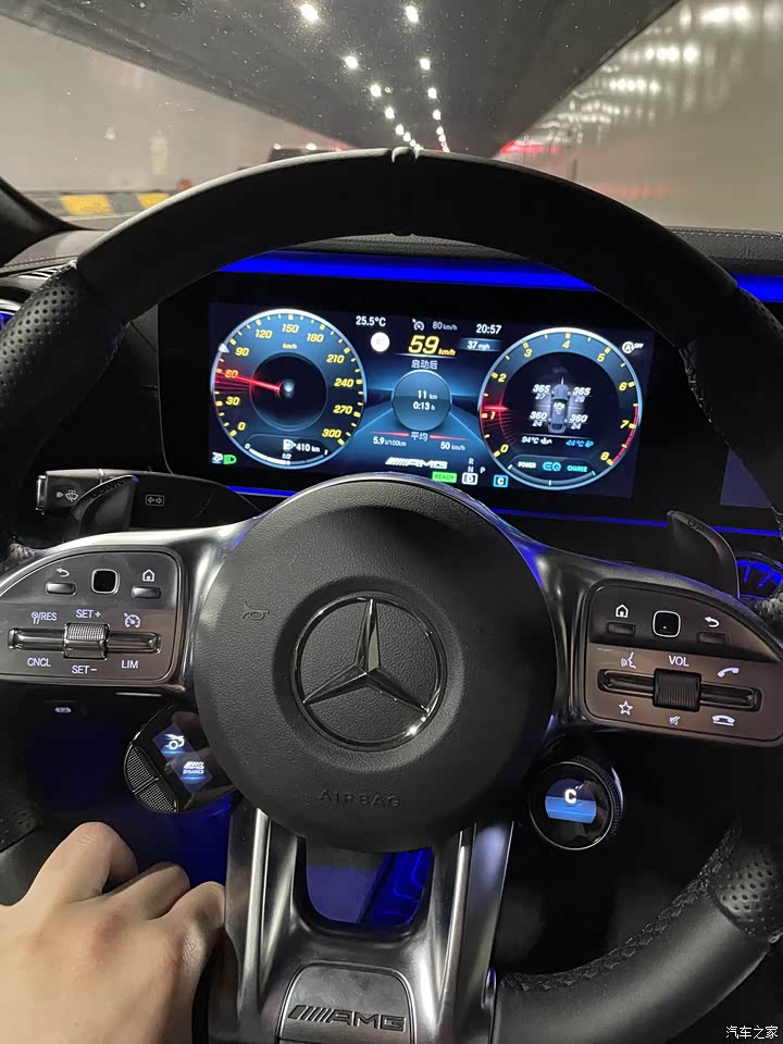 讲到油耗,就不能不说这油耗是真的低,开了8k公里下来平均油耗10,下班不堵车油耗一般是9,最低开过5.9的油耗,真后悔买性能车,其实平常也没什么踩油门,都是正常出行。因为有48V清混的介入,所以这车开空调跟没开空调油耗好像没有区别,问了奔驰AMG工程师也是这么说。