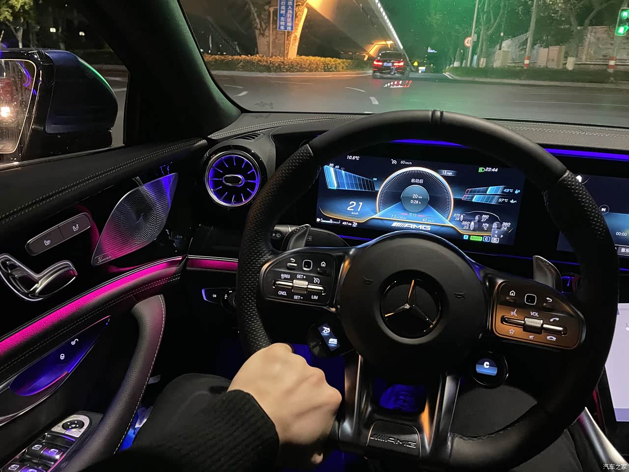 买这车的原因吧,一开始特别喜欢帕拉梅拉的,关注了半年后面觉得有点看腻了,街上车也多,主要也是因为买的时候要加加10万,8系的话看了中控感觉真的差点意思。后面朋友先买了这台哑光灰的,感觉前脸太帅了,看完立马也定了一台市场上有的现车,选了哑光宝石蓝2.7W,红色安全带6k,OLED旋钮5.8K,DA4 3.2w,当时已经快到过年了所以车优惠几乎没有,也怪自己着急提车没等带排气的车。 有个惊喜的就是买车的时候销售也没说,这车20年7月后产的,所以是21款触屏,当时已经在抖音看到21款更新的信息,没想到自己拿到了福建第一太21款,心情相当好。朋友就早一个月喜提换代前的(我是真不知知情,希望朋友看到别打我。GT 4门是AMG部门独立研发的车型,可能外观上比C63 E53 辨识度高一点(没别的意思,键盘侠别喷)主要还是前脸吧,实在太好看了,买这车的一大理由。也考虑S coupe,但是最后选了AMG产的4门 之前家里有一台AMG GLE43,开了S 有轰隆隆的声音,所以对AMG一直很喜欢。 讲到底,就是因为这车便宜。。。。前脸内饰好看。。。其他的没了