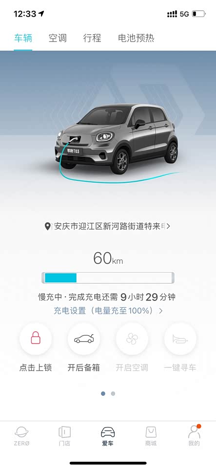 剩100km左右 快充40分钟就能充满,慢充有点慢 要9小时。