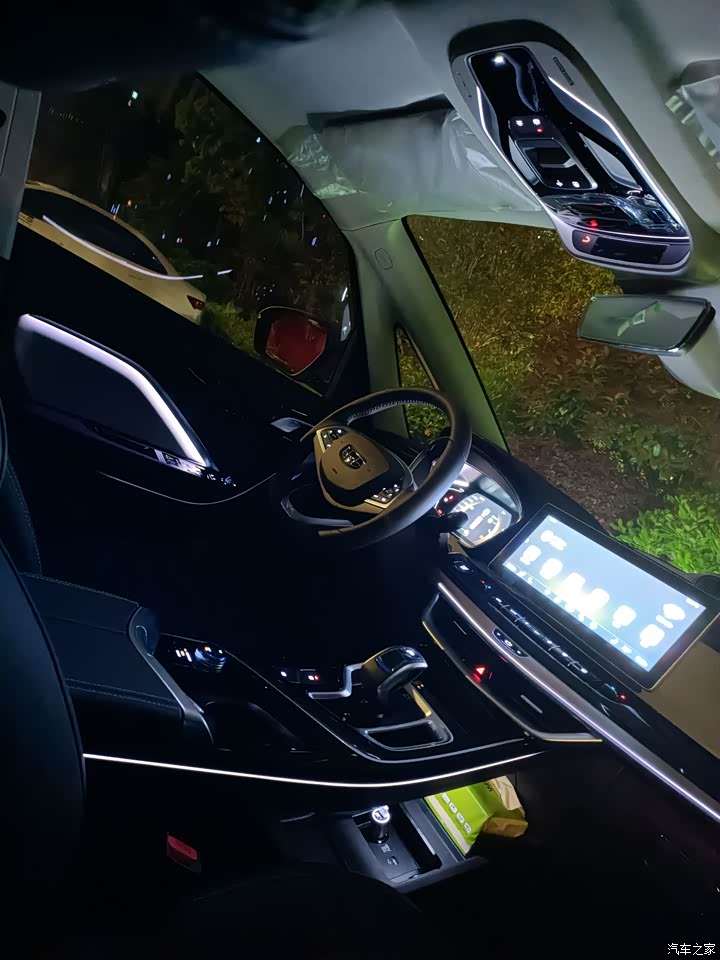 这个车的豪华感,处处都能体现,看看这个氛围灯,看看这个中控,看看这个扶手箱,每个都体现了精致,配色也很和谐。
