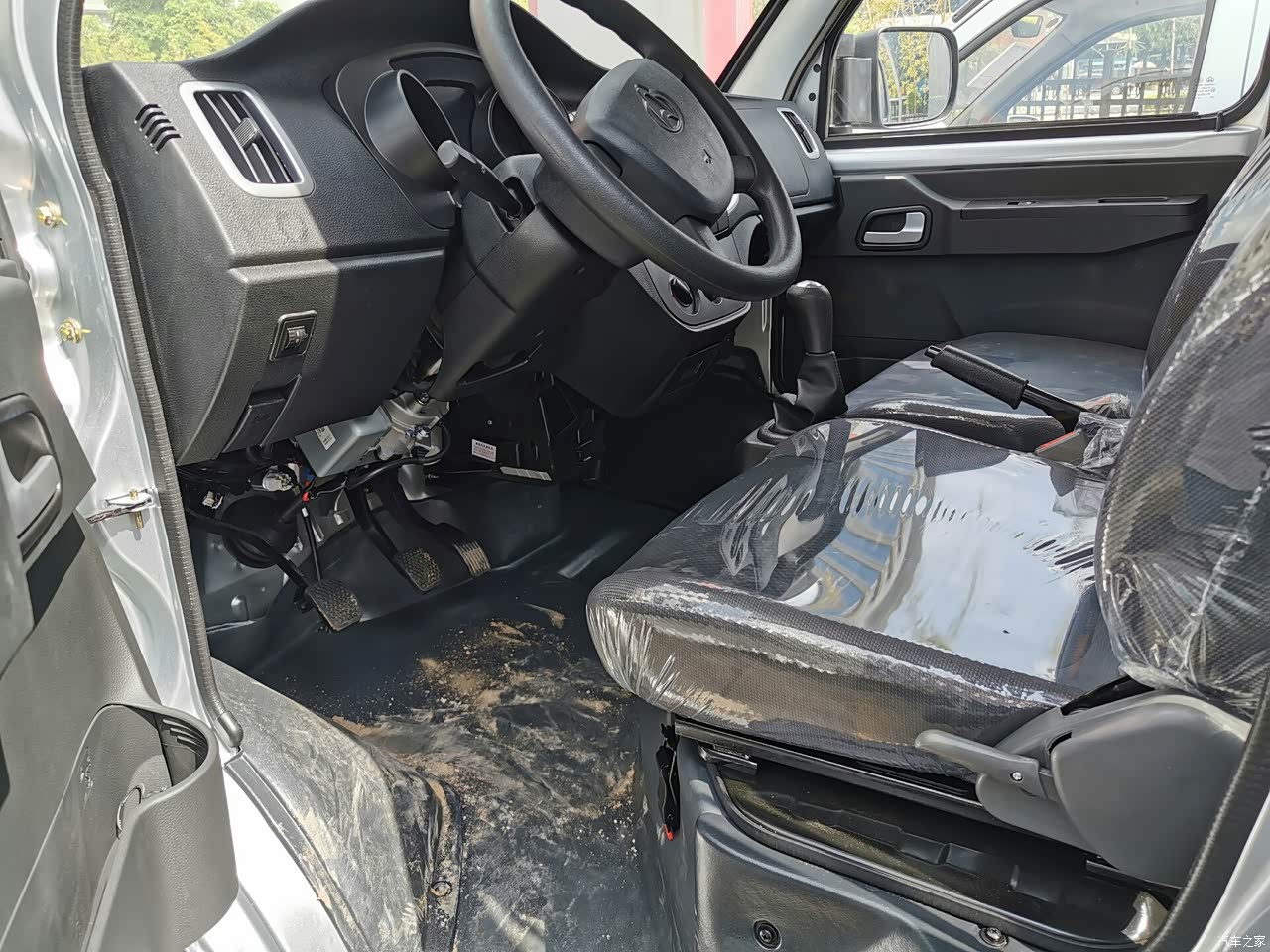 小货车嘛,有这样的空间,1.8米的高个子,整个人坐进去也轻松转身。原厂空调,收音机,USB插口,原厂电动窗,这样的配置,很是舒适。灰色座椅配灰色仪表台,实用耐脏。要是配米色,估计没两天就脏的难耐了吧!所以说长安的细节做的很不错的。