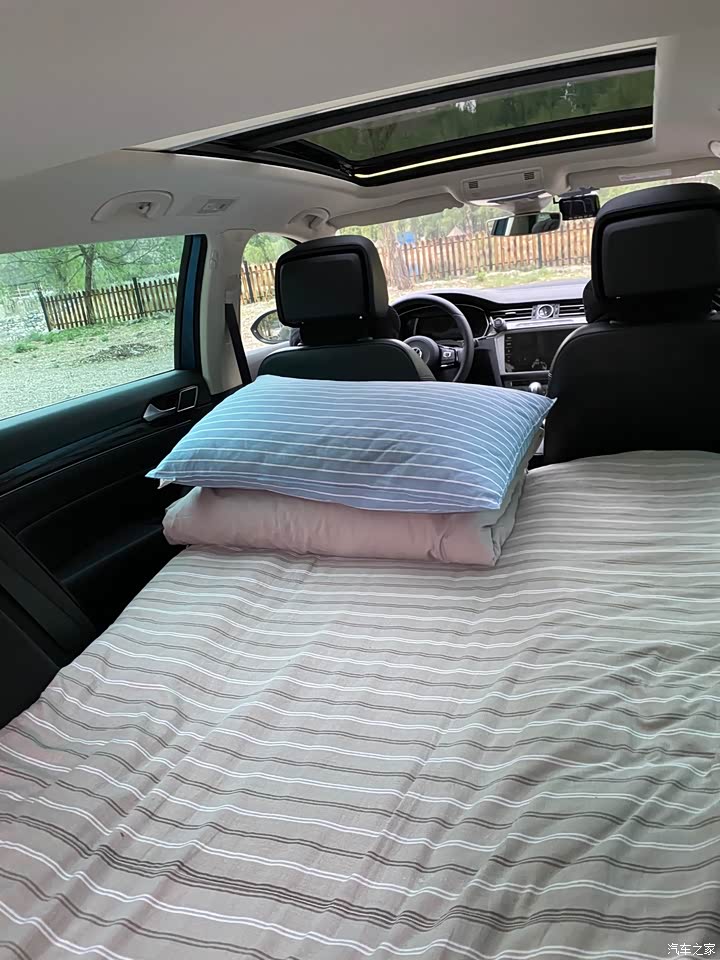 空间宽敞,虽然是标准轴距,但是后排腿部空间够用,只要不是特体,座椅放倒,后边睡两个人没问题。